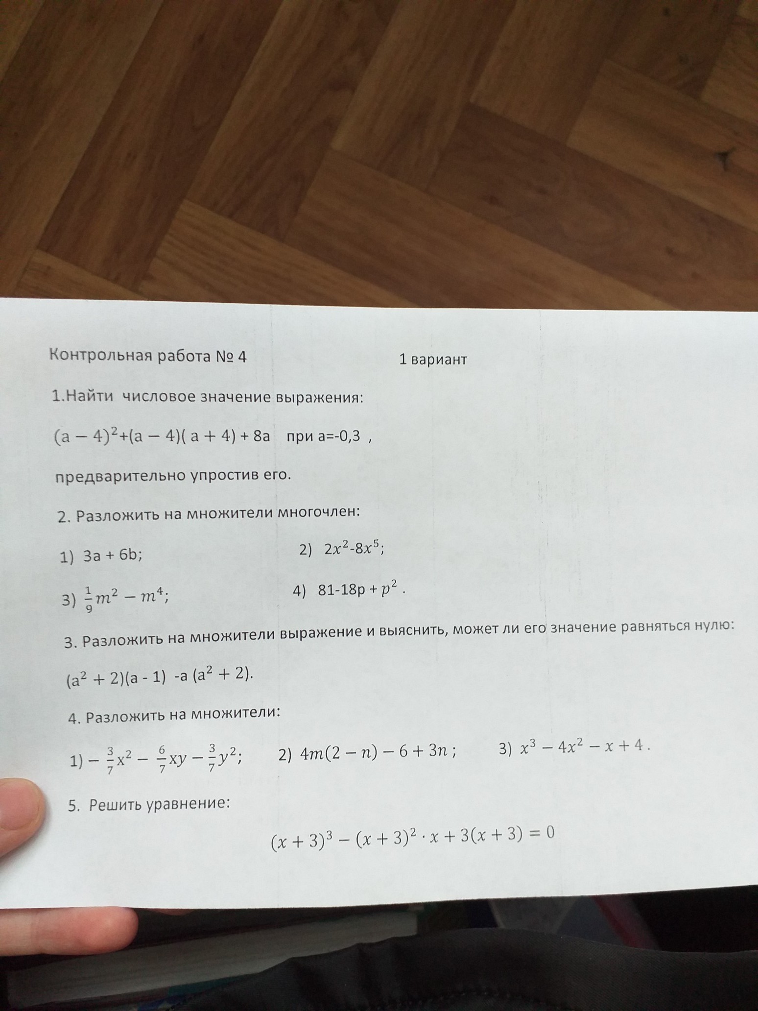 (а - 4)² + (а - 4)(а + 4) + 8а = а² - 8а + 16 + а² - 16 + 8а = 2а² = 2 * (- 0,3)² = 0,18