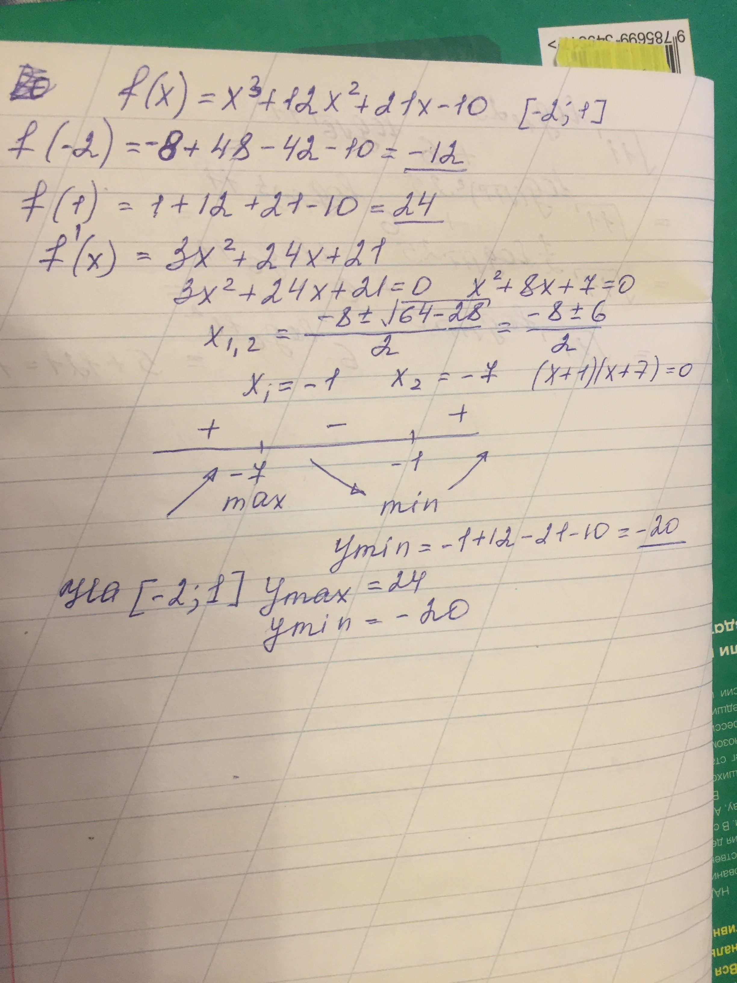Дана функция f(x) =x³+12x²+21x-10. Найти: