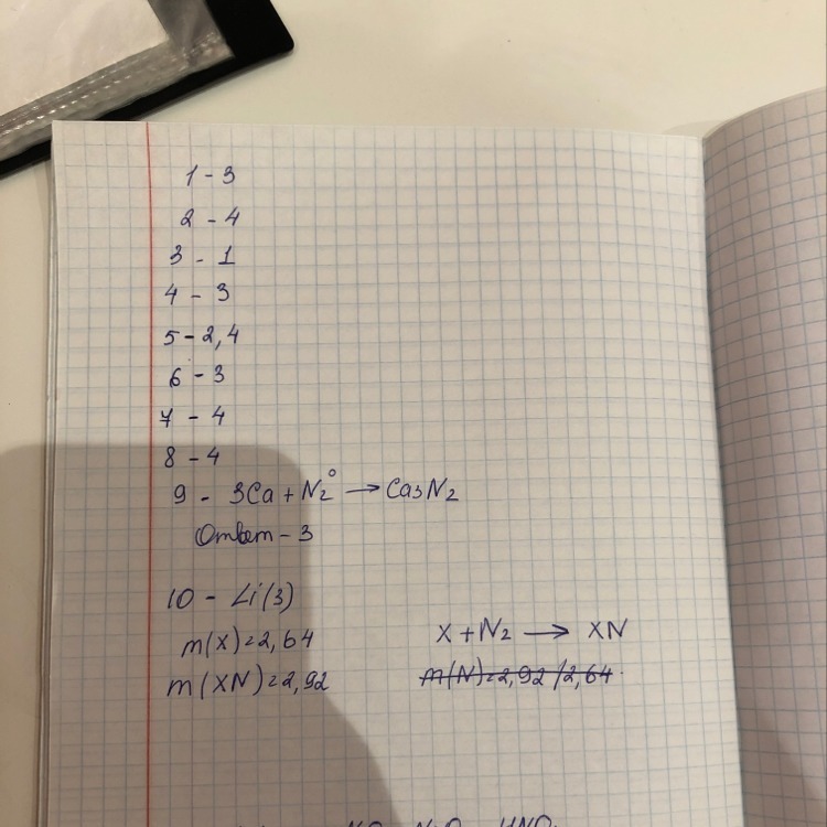 9. Коэффициент перед восстановителем в уравнении реакции, написать уравнение реакции кальция с азотом...