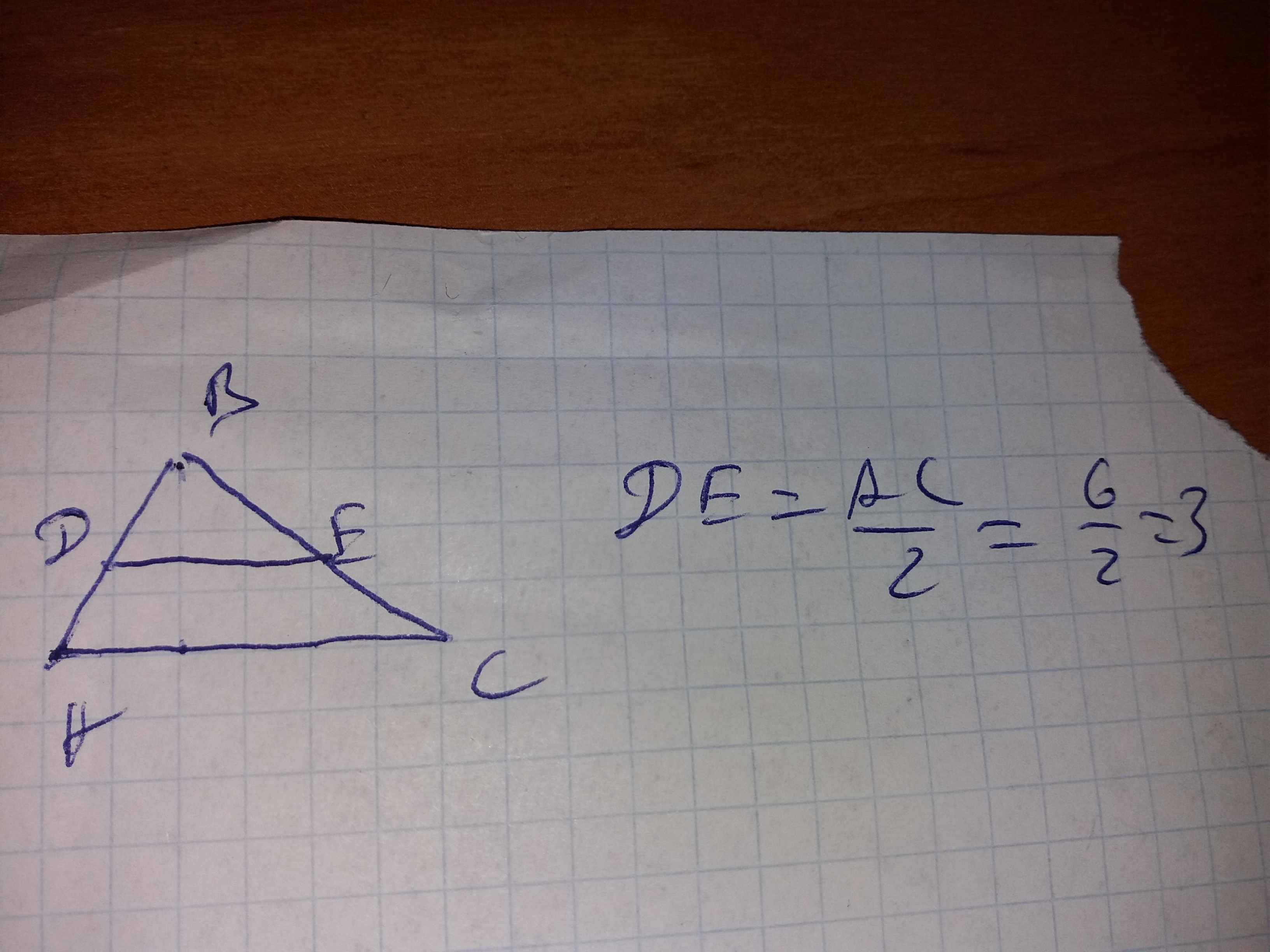 Средняя линия равна половине основания 6/2=3