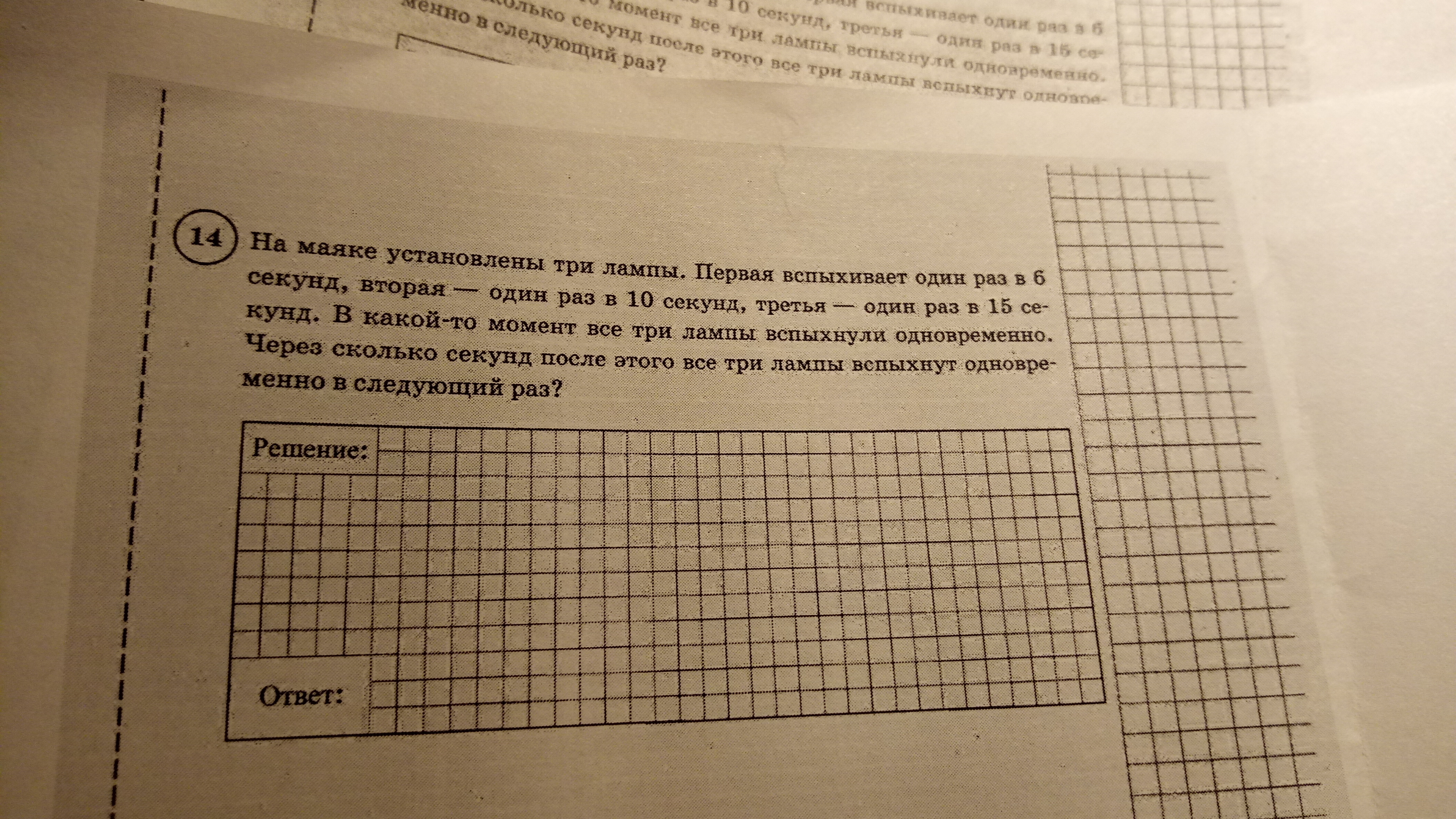Число секунд когда эти лампы вспыхнут одновременно в следующий раз должно делиться на 6, 10 и 15, значит нужно найти НОК (6; 10; 15)разложим на простые множители: