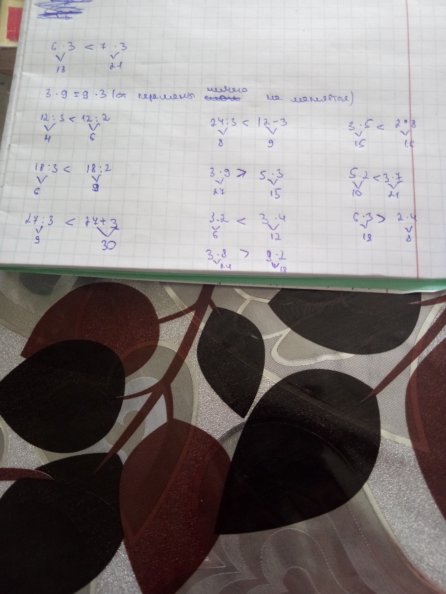 Сравни 6×3*7×3,3×9*9×3,12:3*12:2,18:3*18:2,27:3*27+3,24:3*12-3,3×9*5×3,3×2*3×4,3×8*9×2,3×5*2×8,5×2*3×7,6×3*2×4
