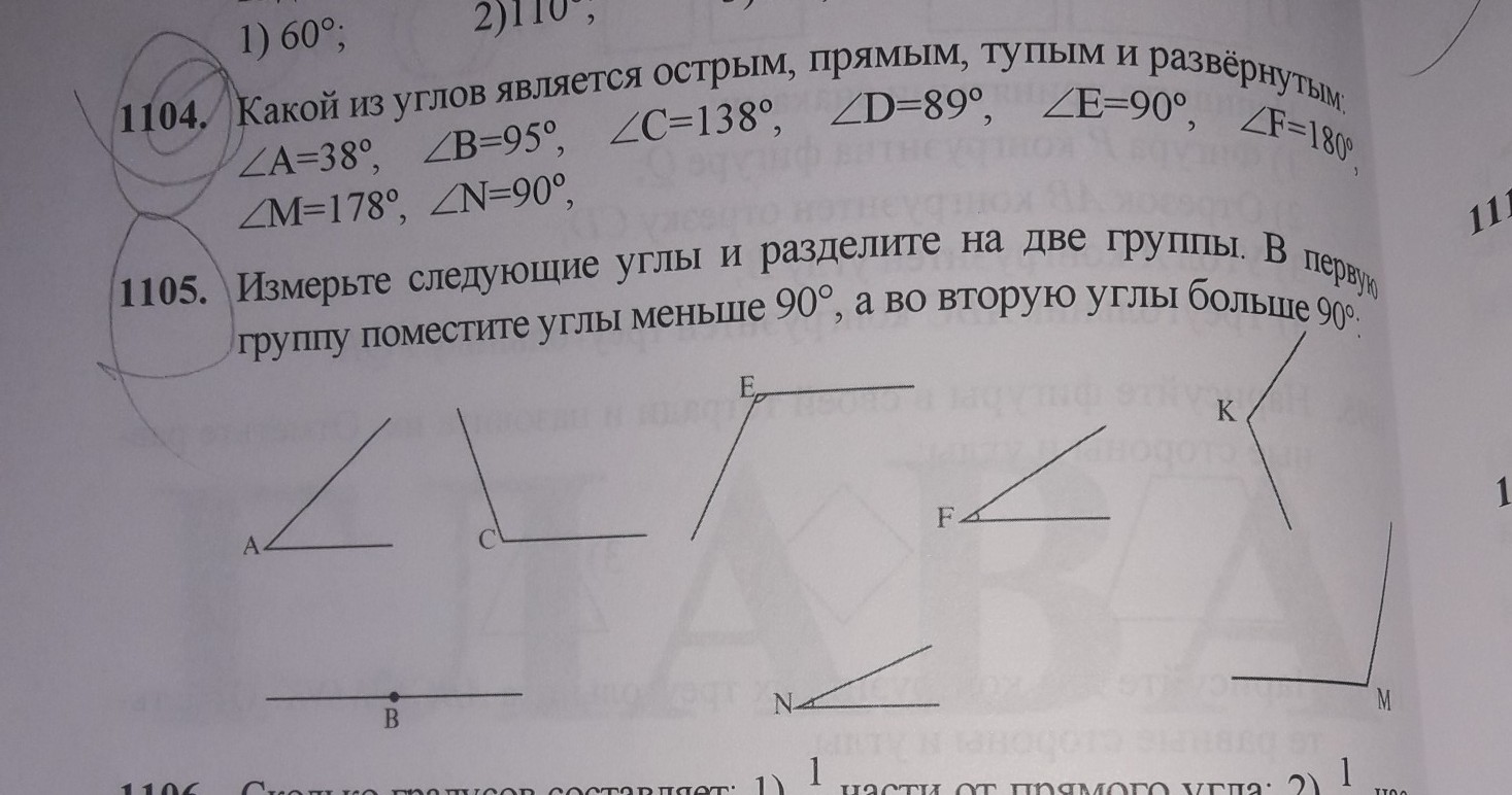 Первая группа (углы меньше 90 градусов) : A, F, N