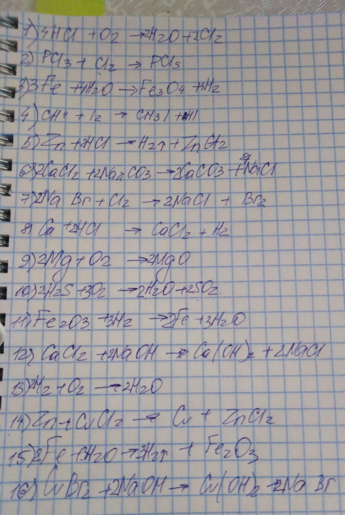 14. Zn + CuCl2 ─ Cu + ZnCl2 ;