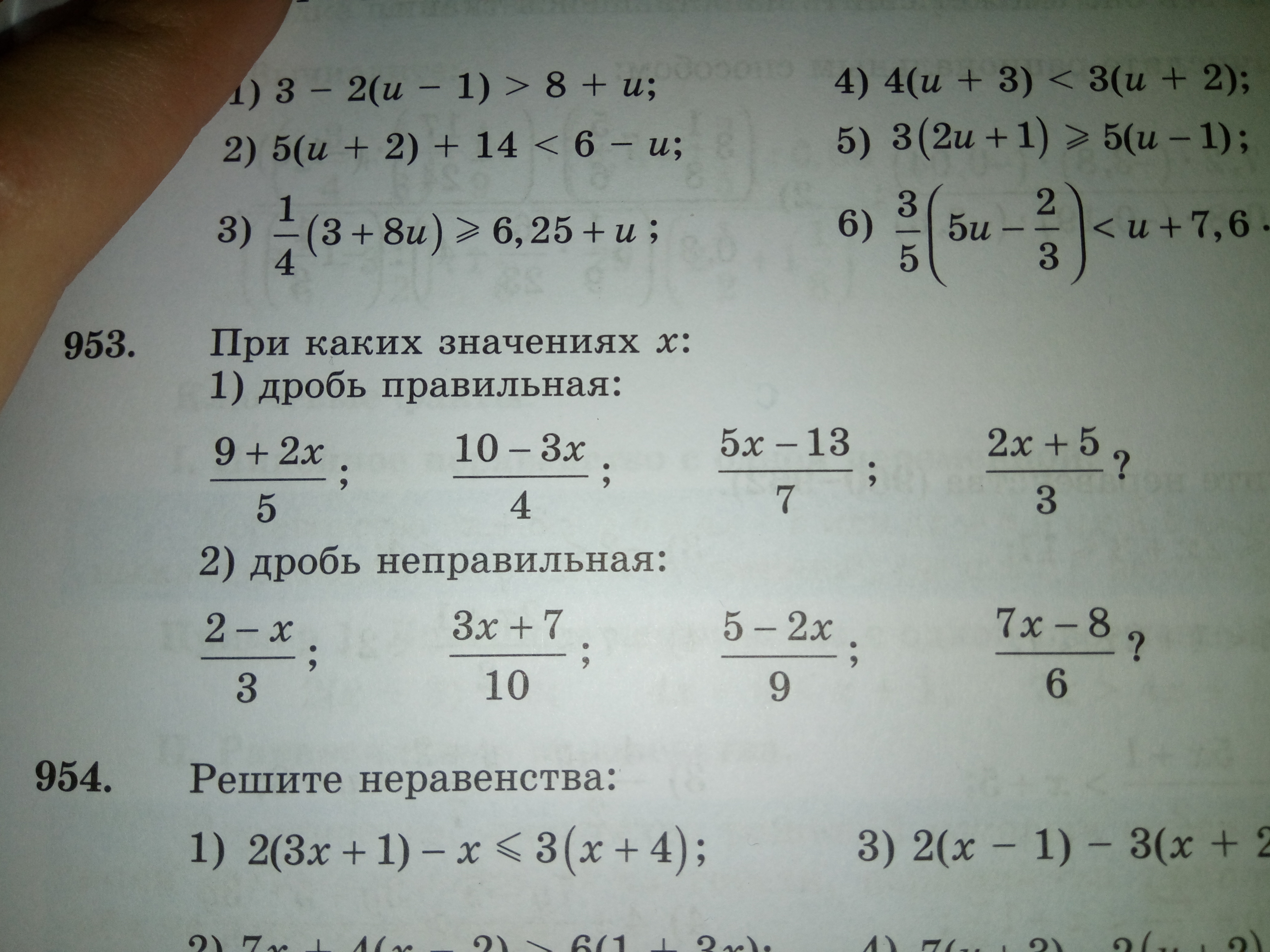 Третья дробь. 5-2х/9. Здесь посложнее, так как снова присутствует знак минус. Значит мы должны его превратить в плюс. А как? Ну конечно же представив х как отрицательное число и вспомнив, что минус на минус дает плюс. Чтобы тебе особо не мучиться с этим - я подскажу, что х должно быть меньше или равно -2. Снова проверим. 5 - 2*(-2)/9. Числитель получается равным 9 (5+4). И знаменатель 9. И снова справились с задачей.