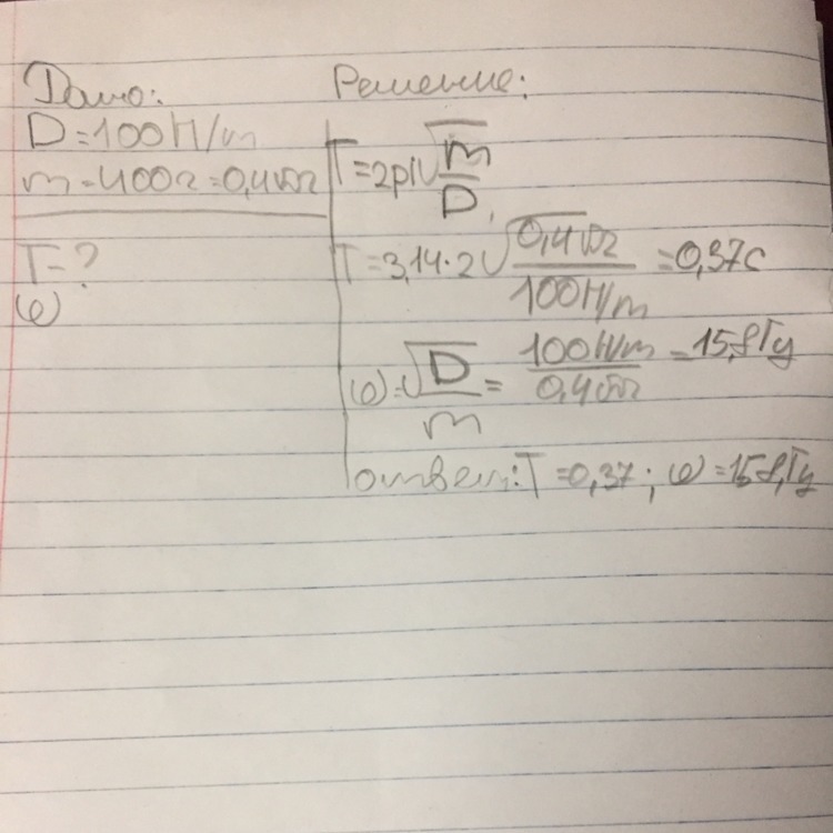 каков период, частоты, амплитуды колебаний пружиного маятника массой 400грамм, жесткость пружины 100H/m