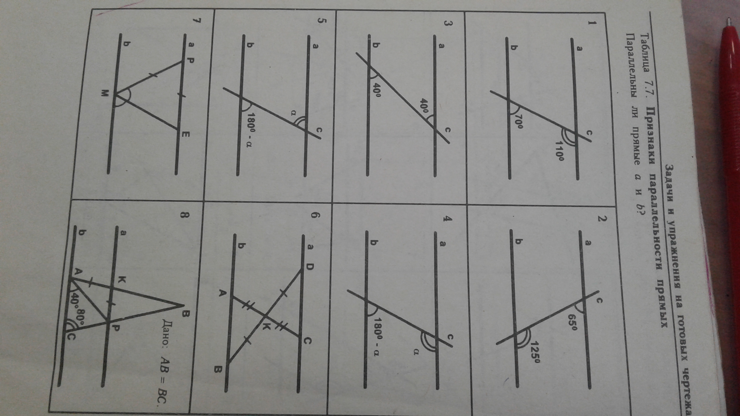 7. ∠E=∠bME(односторонние углы)=>a||b
