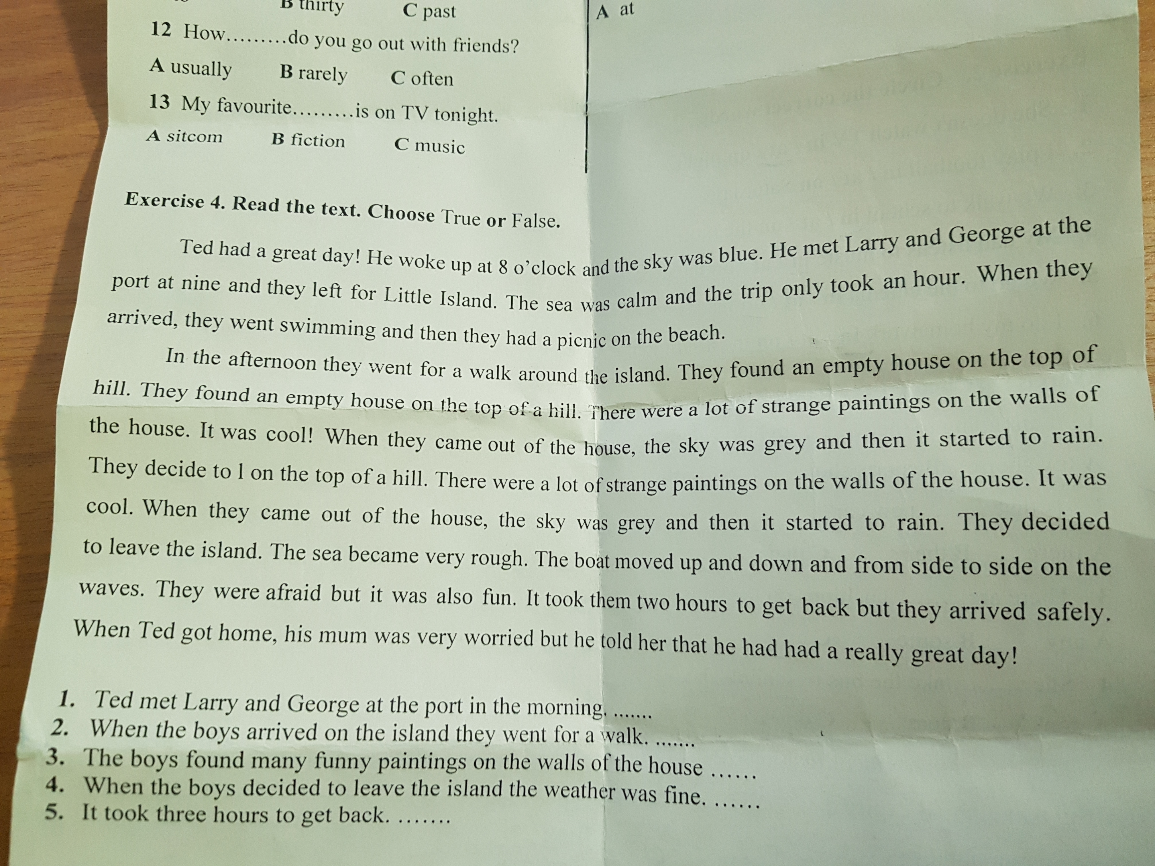 1 - T 2 - F 3 - f 4 - f 5 - f