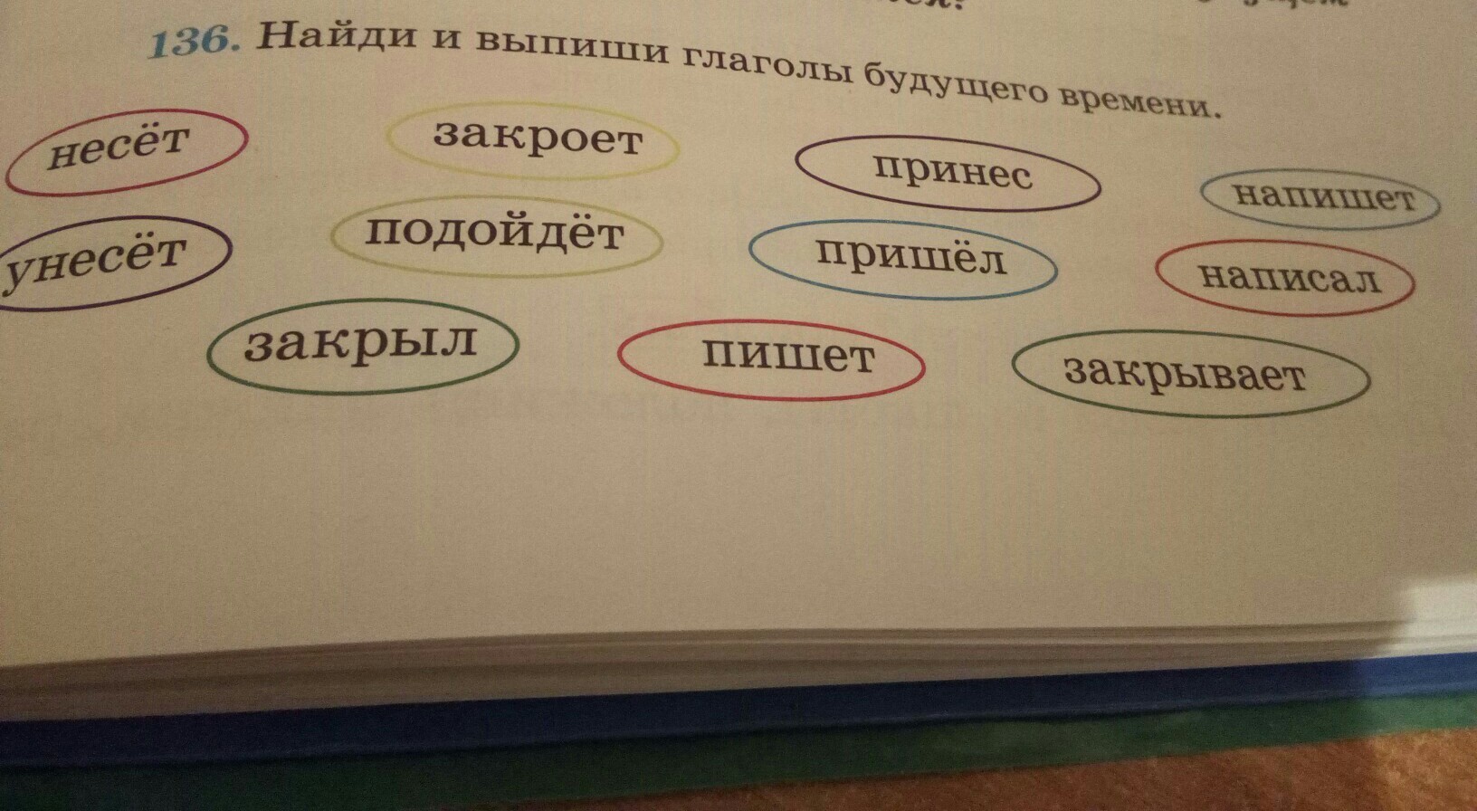 унесёт, закроет, подойдёт, напишет. эти глаголы будущего времени