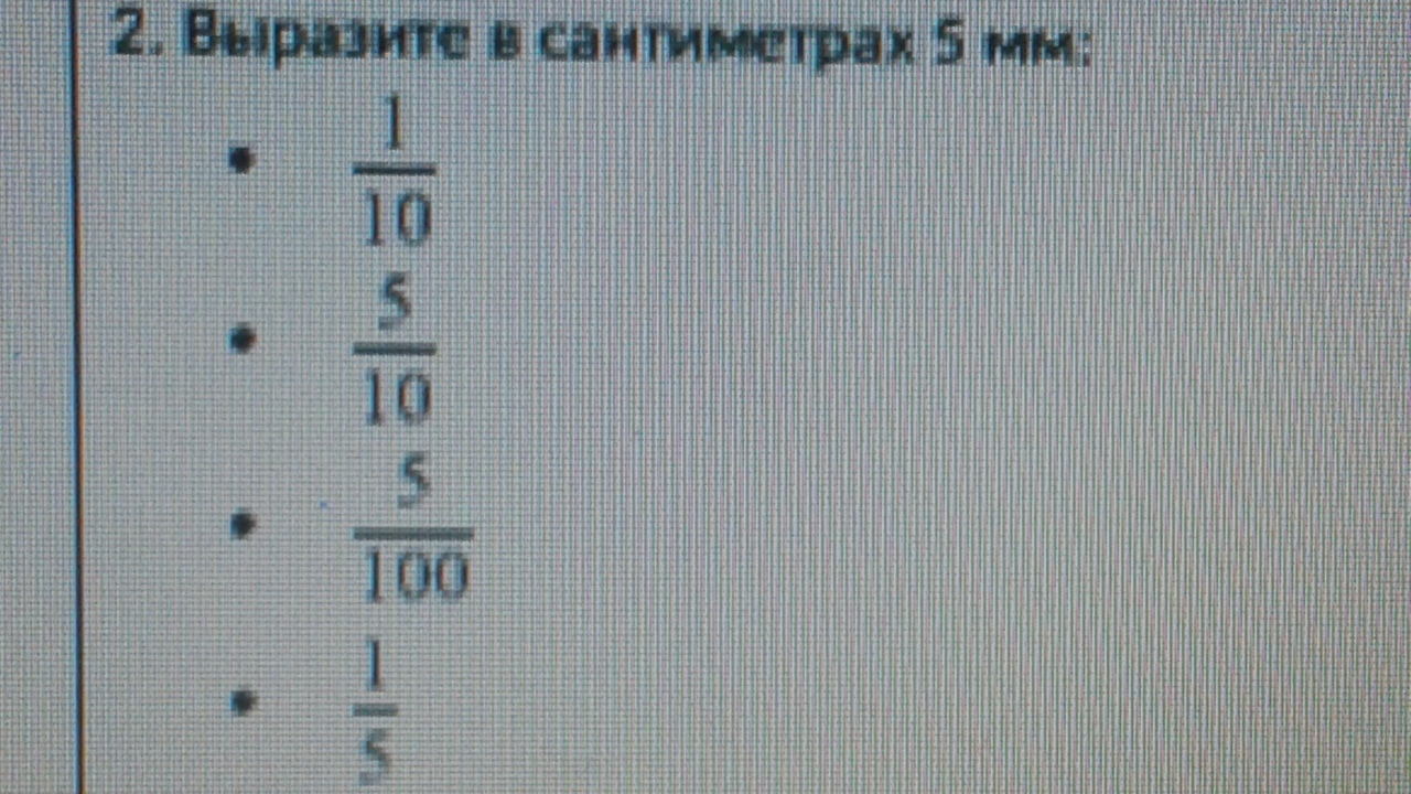 В сантиметре 10 мм. , соответственно 1 мм. = 1/10 см. Соответственно ответ 5/10