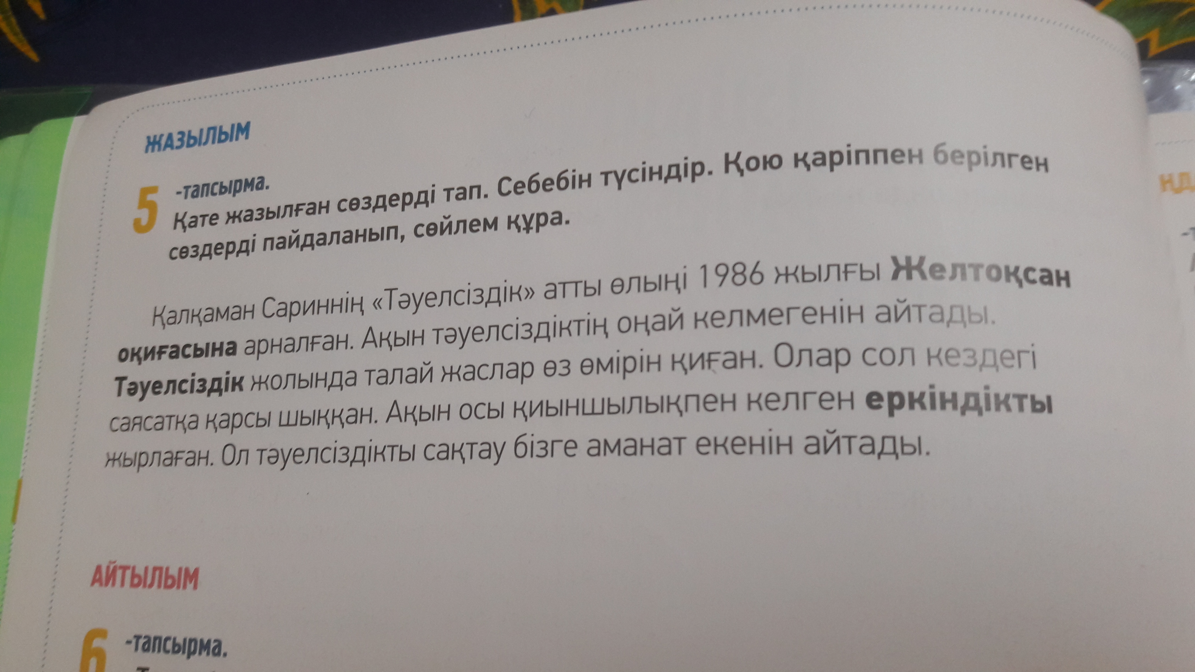 Неправильные слова: өлыңі, жаслар,еркіндікты, тәуелсіздікты,