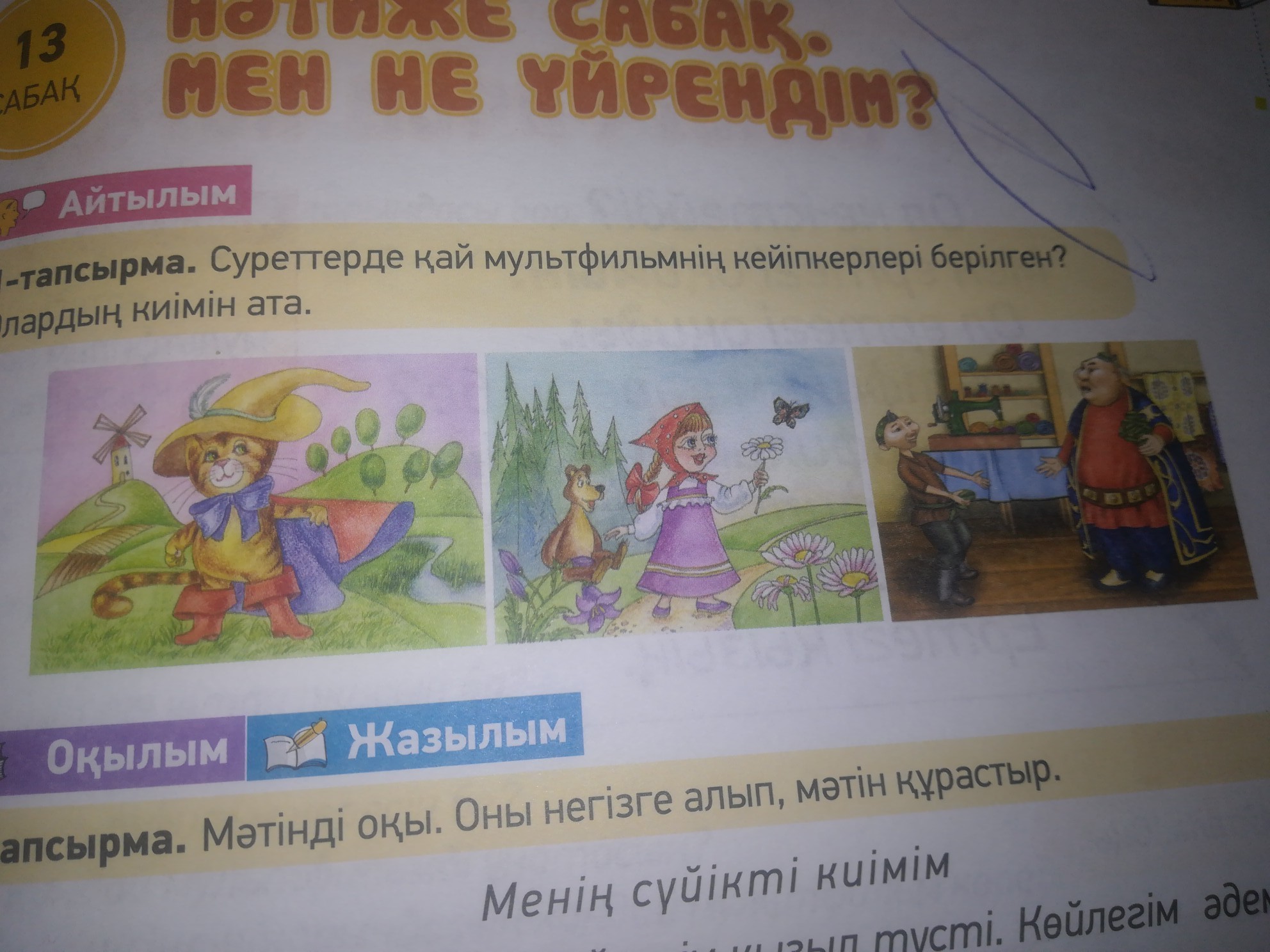 2 суретте <Маша және Аю> атты мультфильмның кейіпкерлері бейнеленген. Маша күлгін көйлекке киінген, ал басында қызыл орамал байланған.