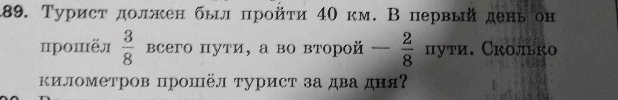 2) 40 × 5/8=25 км прошел турист за 2 дня
