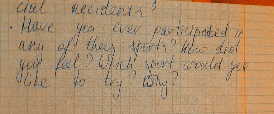 I’ve never participated in extreme sports but I’d like to go snowboarding very much. I’ve chosen this sport because it is good for my health and physical development.