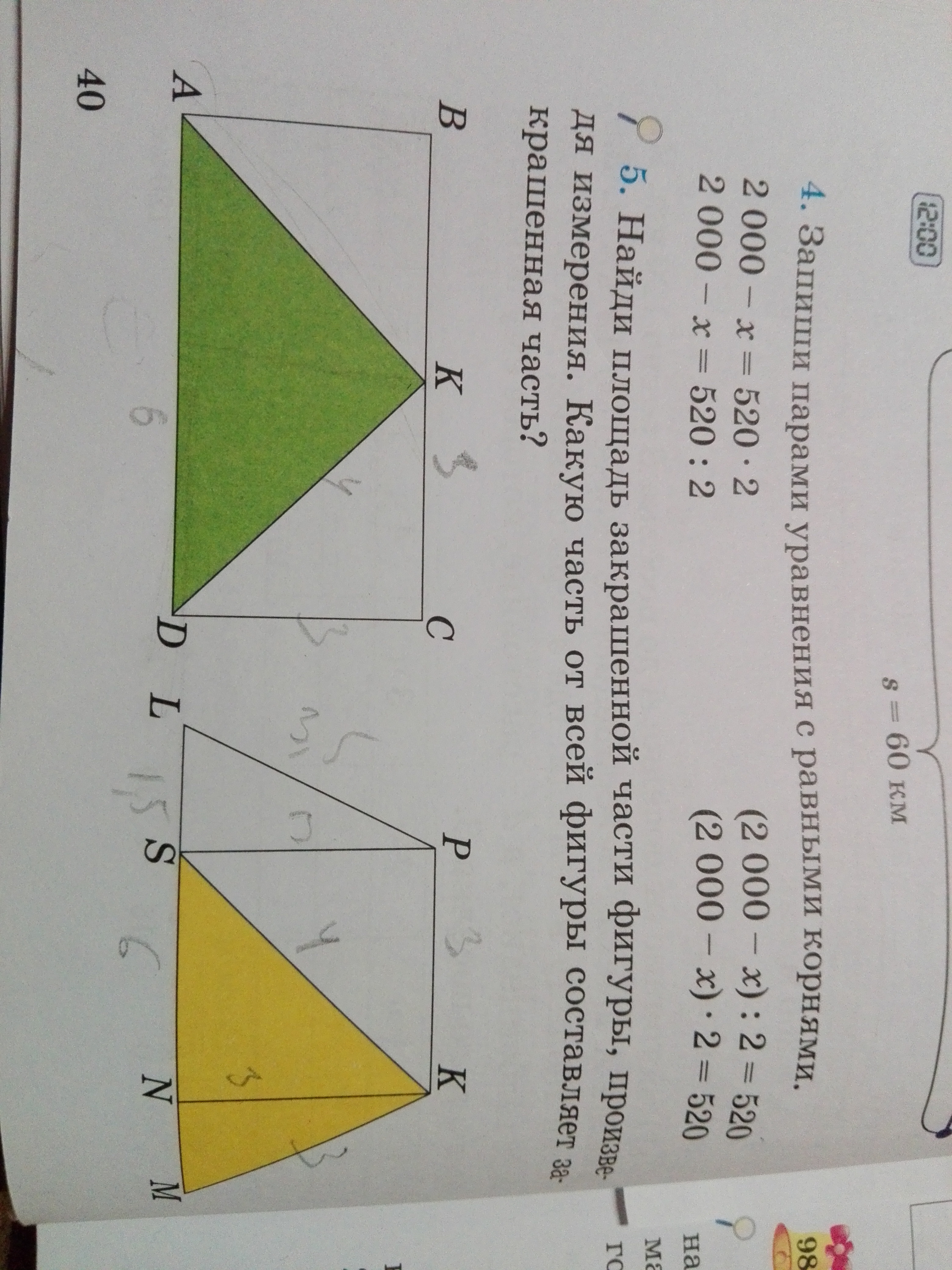 Найди площадь закрашенной части фигуры, произведя измерения. Какую часть от всей фигуры составляет закрашенная часть ?