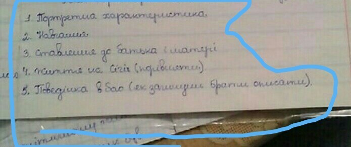 Андрій: Романтичний,любить маму,любить ворожу дівчину,закопував декілька раз свій Буквар. Не дуже добре відноситься до походів, війн