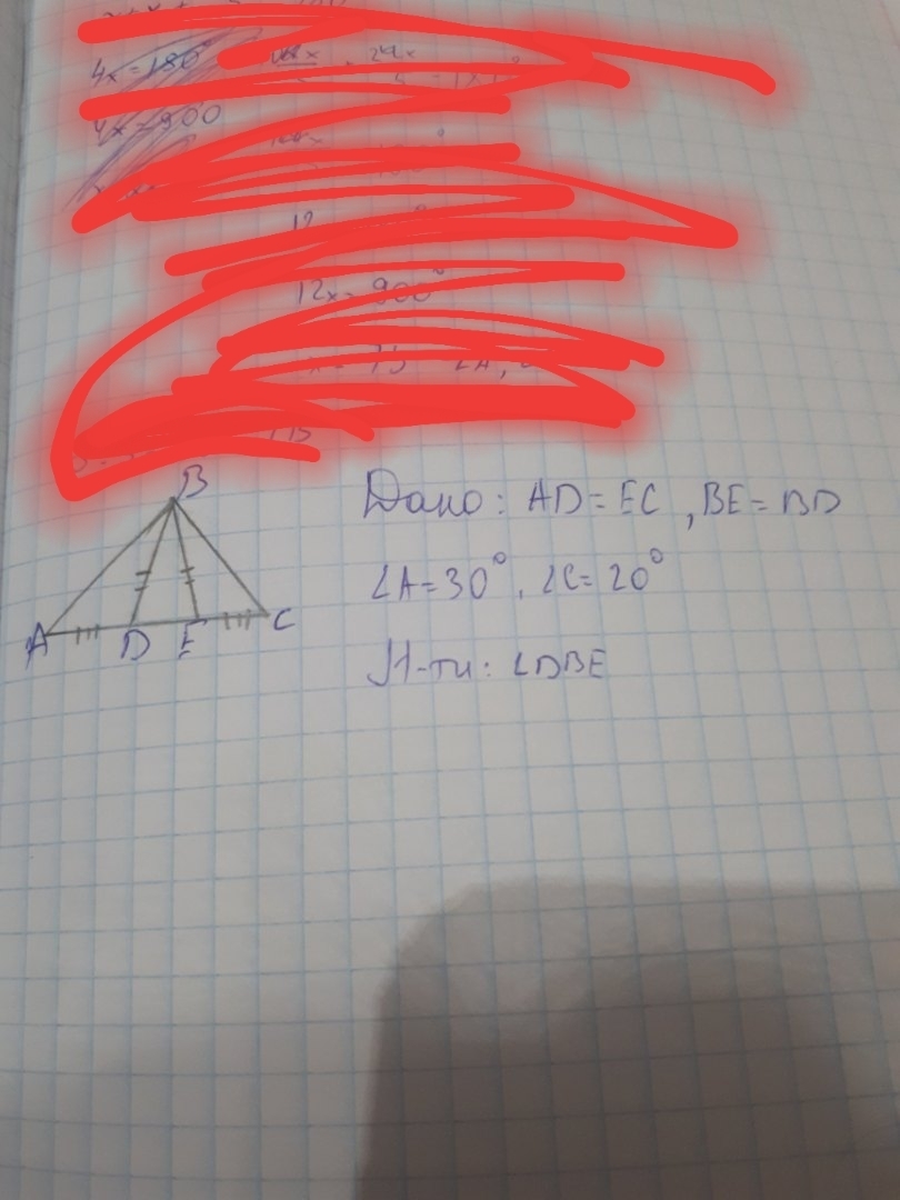1)DB=BE(по условию)=> <BDE= <BDE(углы при основании равны у равнобедренного треугольника.)