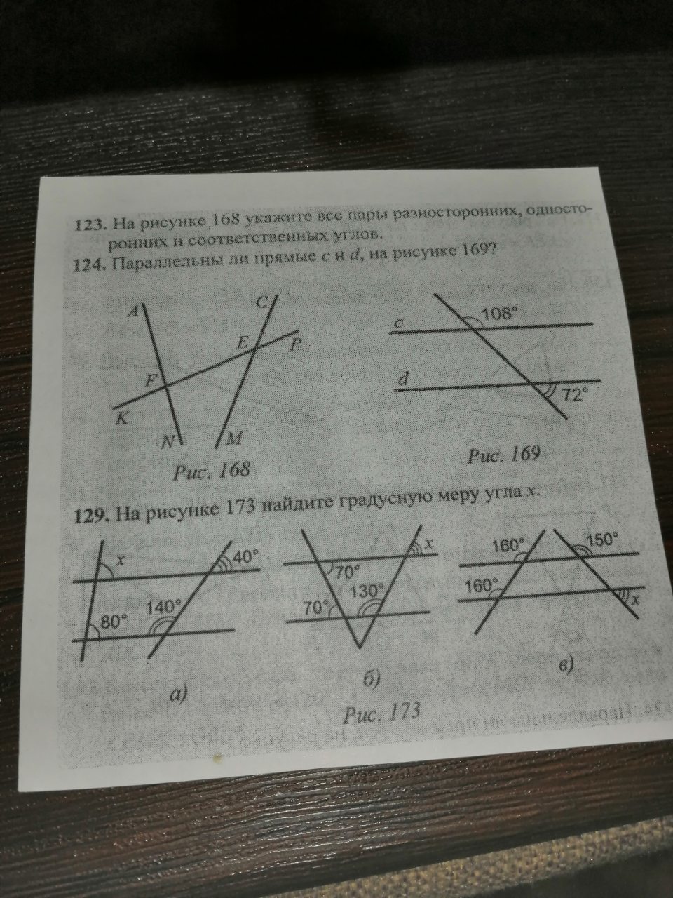 Помогите, пожалуйста, геометрия 7 класс, задание 129. На рисунке 173 найти градусную меру угла х
