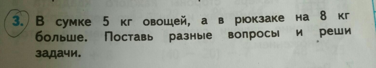 Вопрос 2:на сколько больше килограммов в рюкзаке?