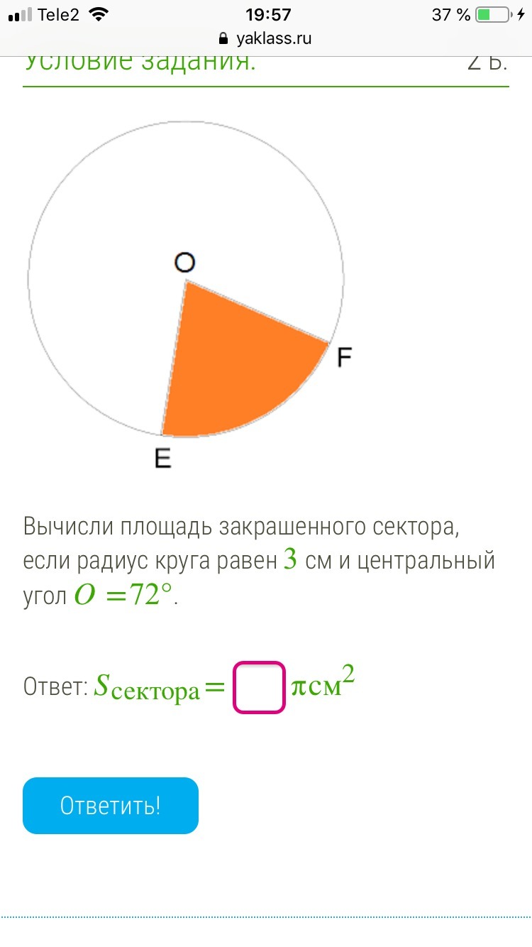 Ответ: 1,8π см²