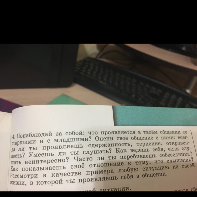 К старшим я проявляю уважения больше, чем к младшим. Когда я разговариваю с учителями, я проявляю уважение. Если тема интересная, то я проявляю интерес, если нет - то сдержанность. Когда я играю с детьми, которые намного меньше меня я проявляю заботу и терпение. Если я разговариваю с пожилыми людьми, то я проявляю сдержанность, терпение и уважение. Сначала выслушаю, а потом дополню или отвечу на заданный вопрос.