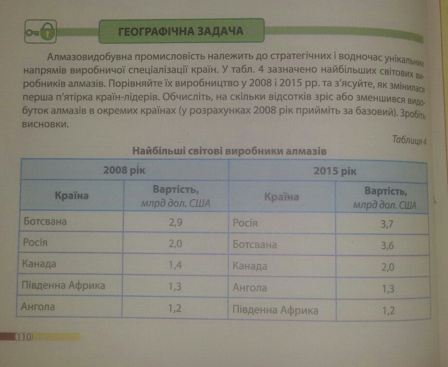 Ребят кто шарит спасайте,мне нужно только посчитать.На сколько процентов выросло или уменьшилось добывание алмазов
