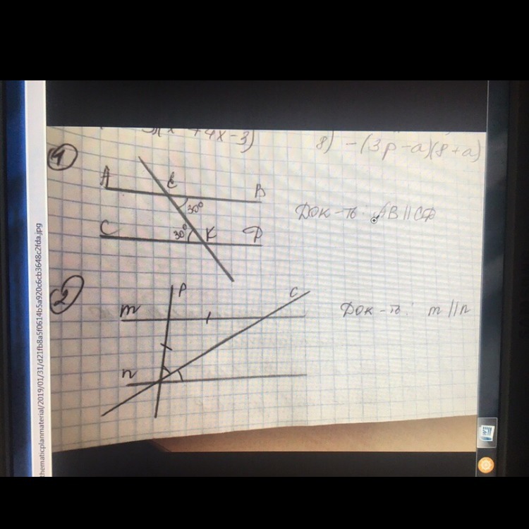 1. рассмотрим прямые АБ и СД и секущую ЕК. угол ЕКС= углу ВЕК. эти углы накрест лежащие. следовательно прямая АБ параллельна СД