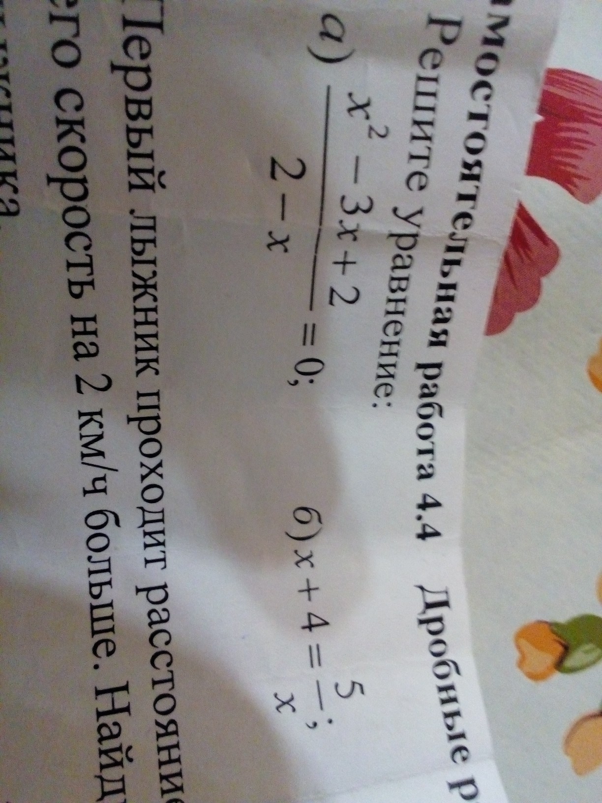 а) x ²-3x+2/(2-x)=0 (домножаем на 2-x, чтобы избавиться от дробной части)