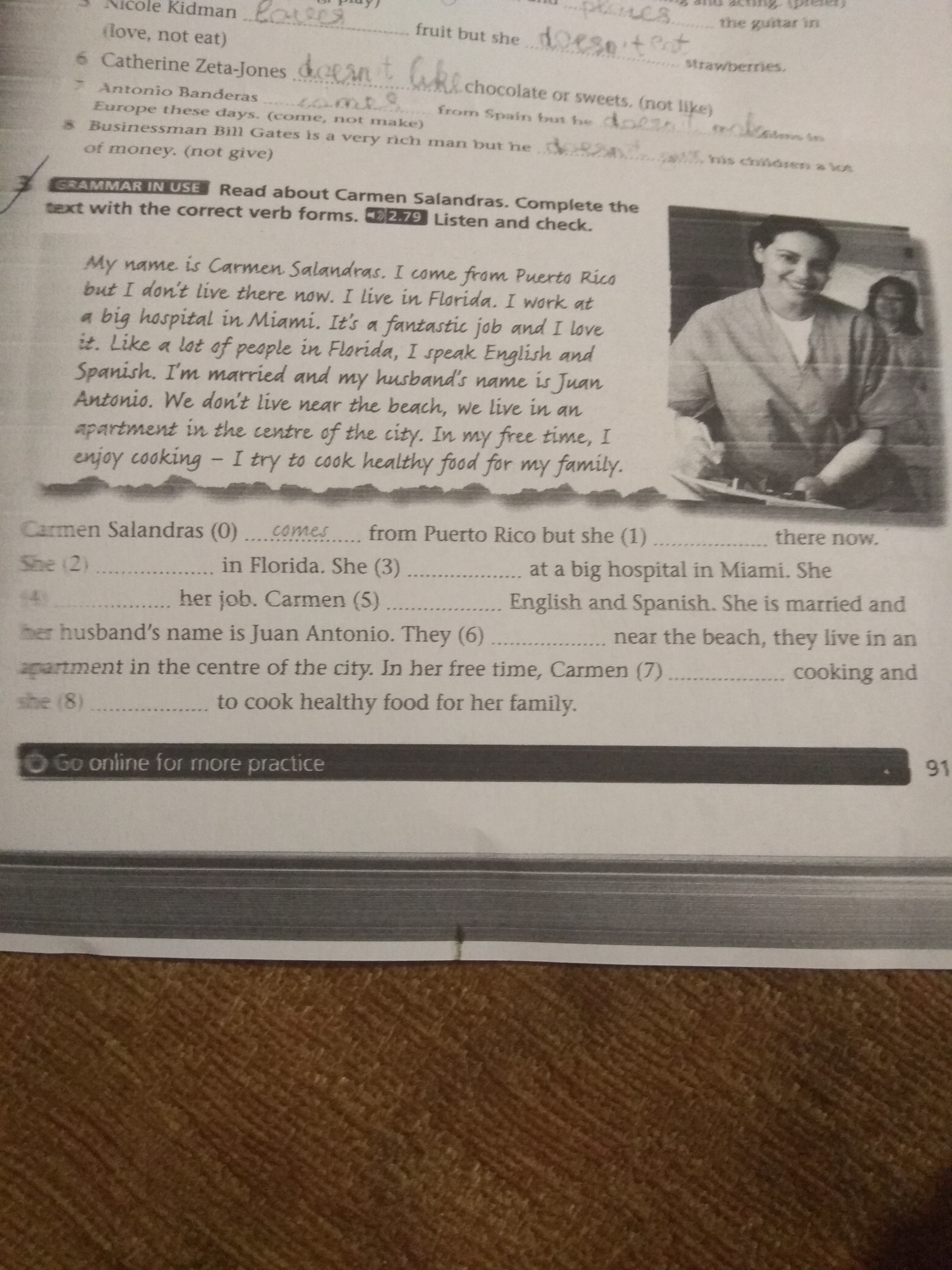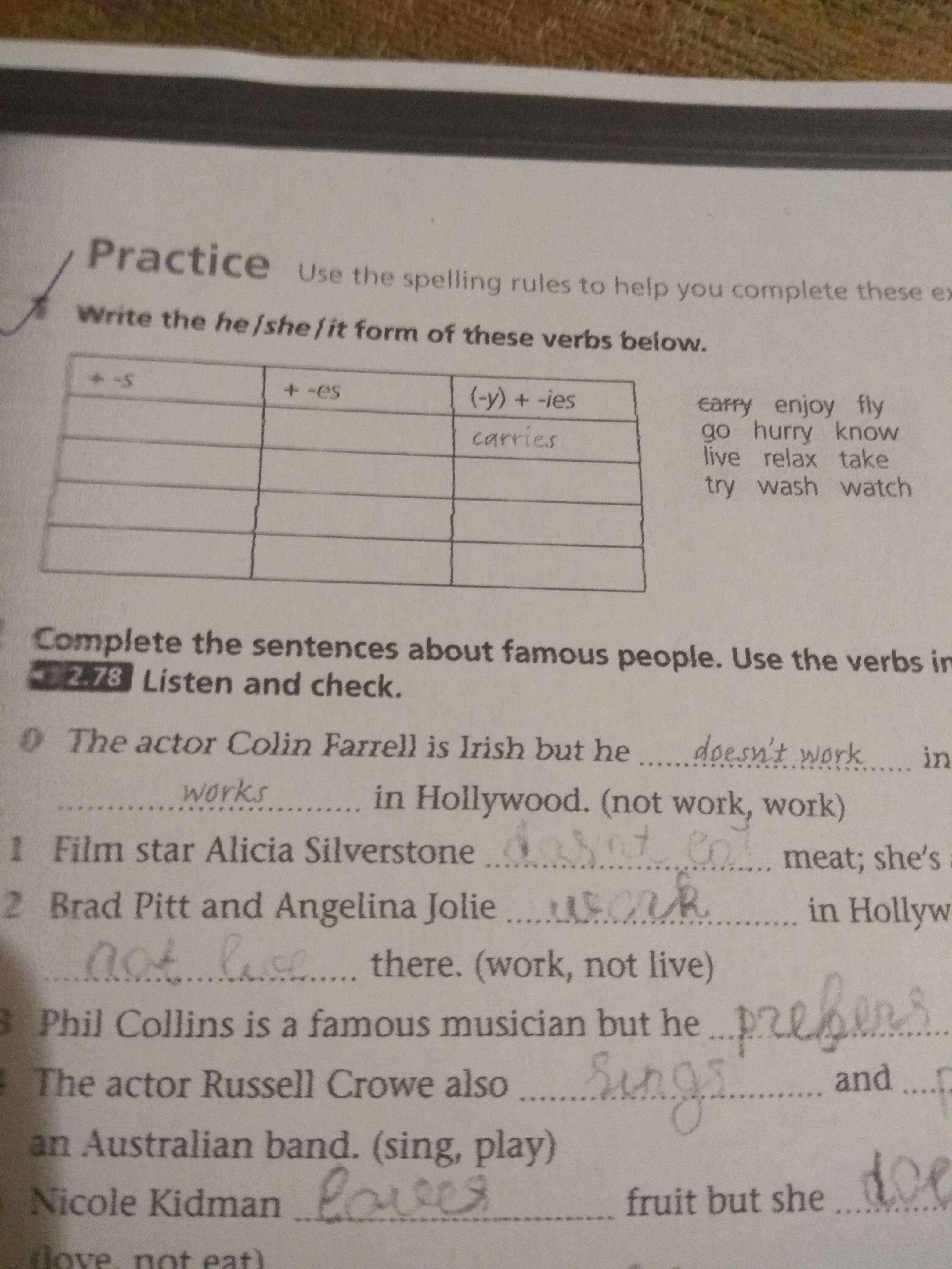 3. isn't, lives, works, speaks, live, enjoys, tries