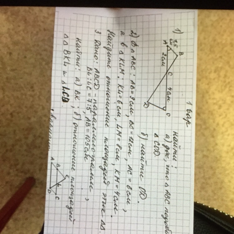 Треугольники подобны по 3 углам. (<А=<О(по условию); <ВСА=<ОСD(вертикальные); <В=OD:АВ=AC:OC(т.к. треугольники подобны)