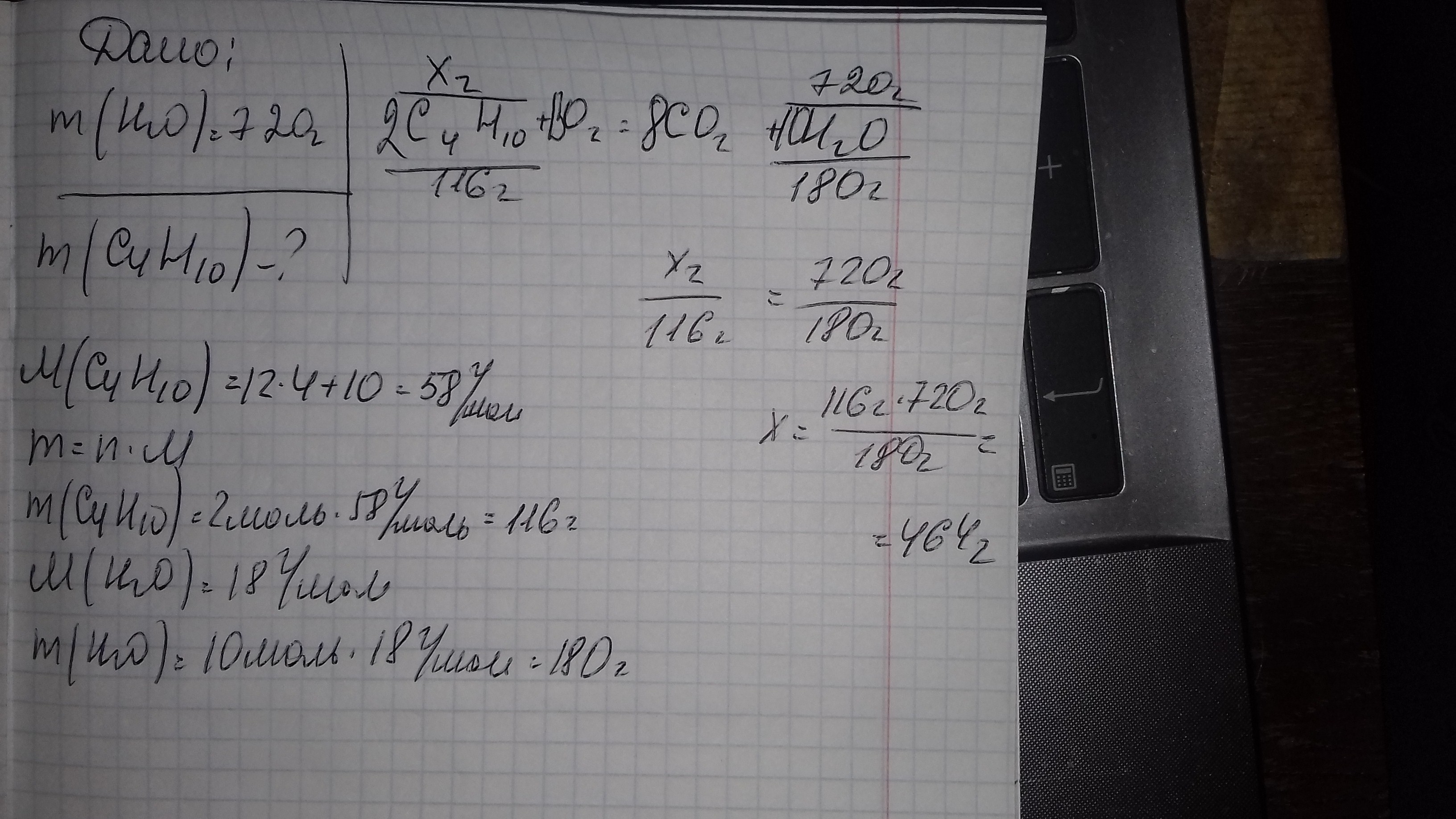 C4H10 + O2 = CO2 + H2O Расставить коэффициенты. Посчитать сколько было сожжено C4H10, если выделилось 720 грамм воды.