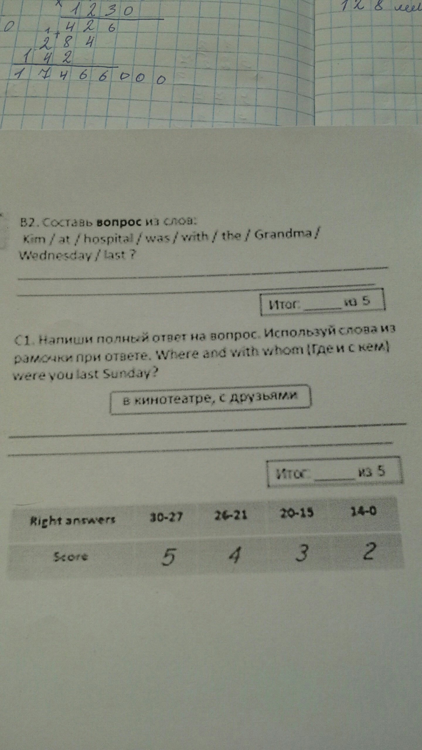 В2.Was Kim and the Grandma at hospital last Wednesday?