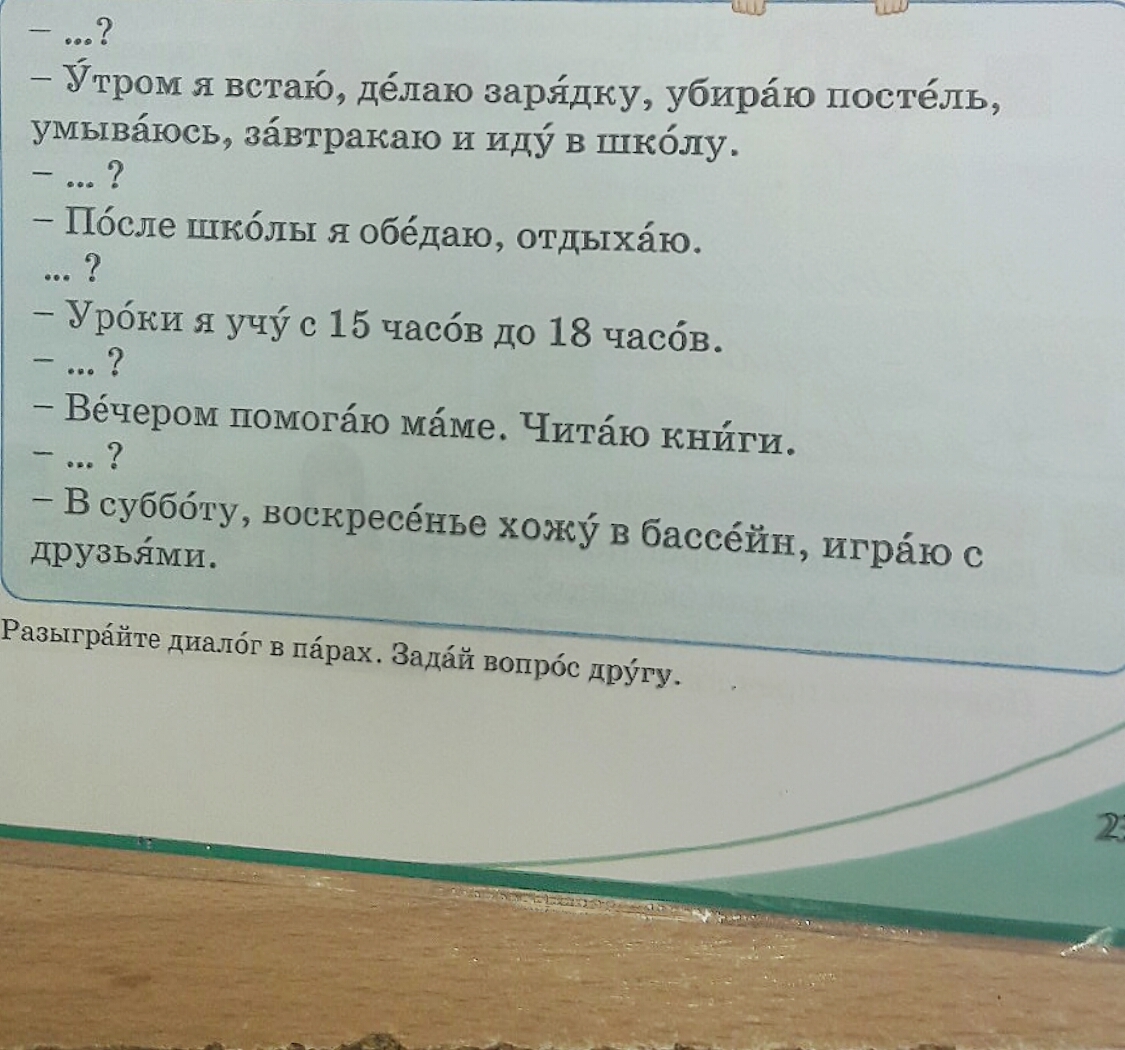 Прочитай диалог. Дополни его вопросами. Глаголы какого времени есть в диалоге? Выпиши их.