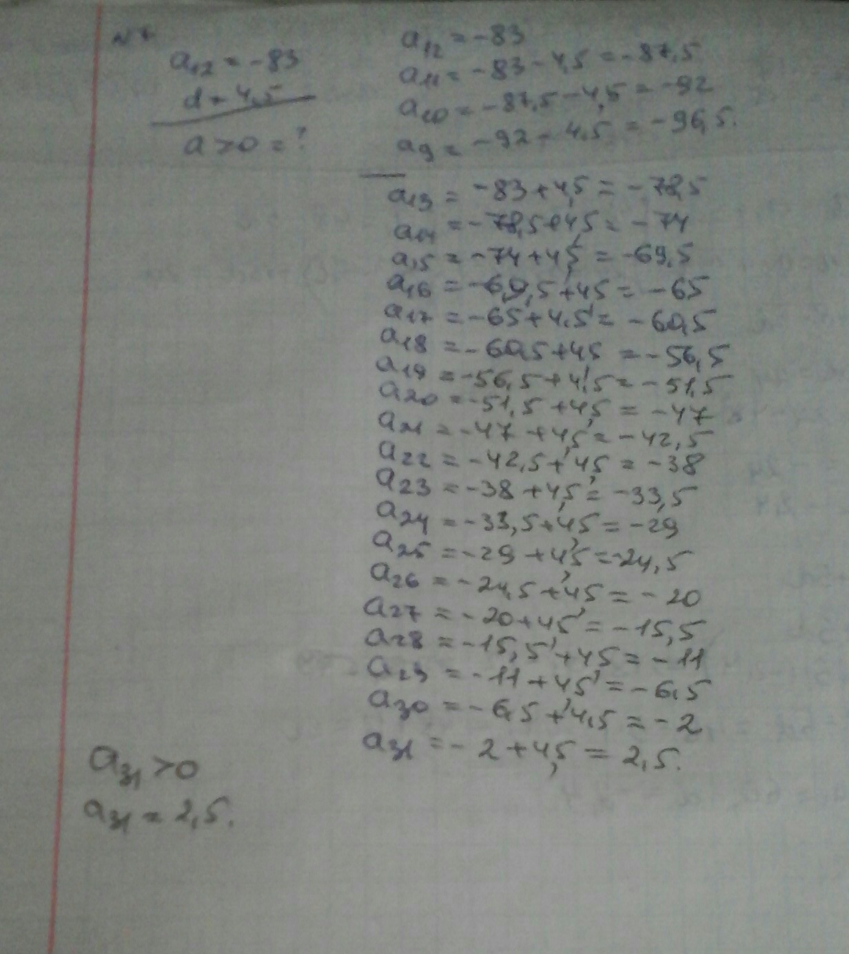 №7. Укажите первый положительный член арифметической прогрессии, если а12=-83, d=4,5.