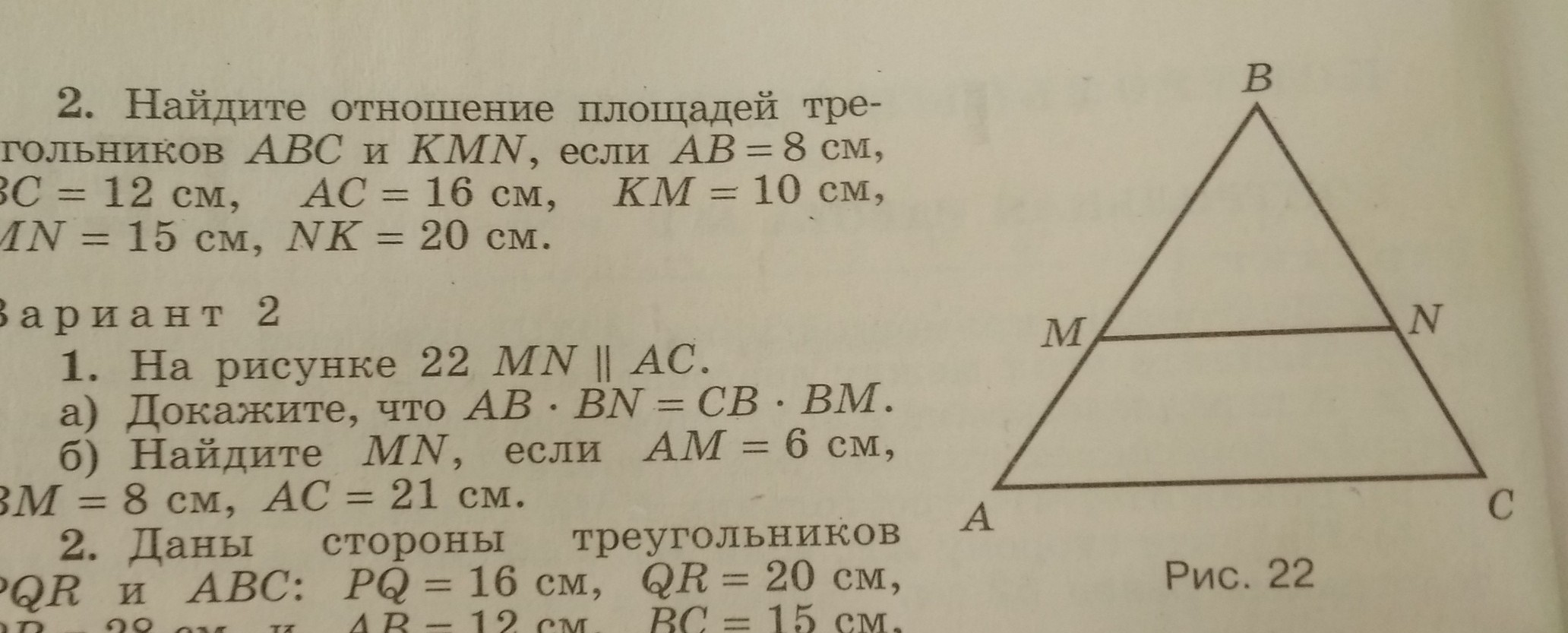 б) Из подобия тр-ков MN=BM*AC/AB=8*21/ (6+8)=12см -ответ