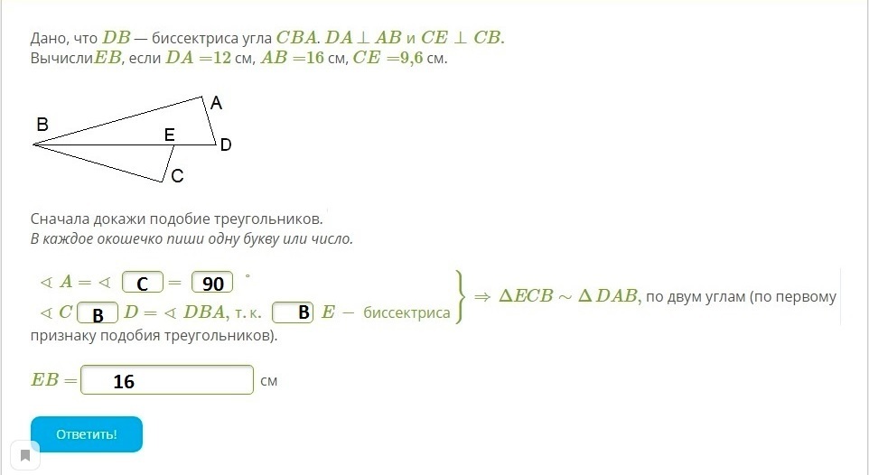 1. bc=ab*ec/ad=16*9.6/12=12.8