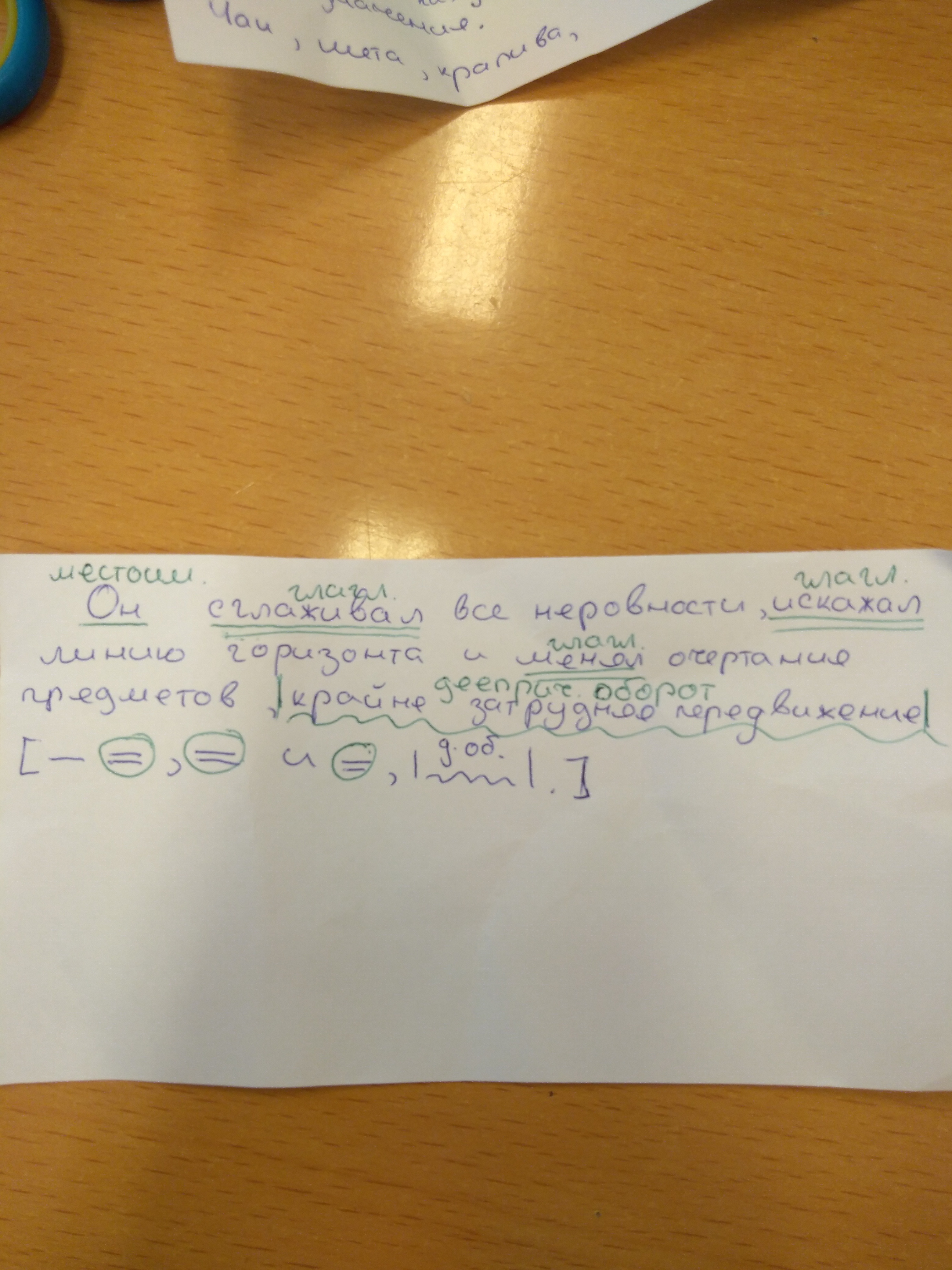 Синтаксический разбор предложения: Он сглаживал все неровности, искажал линию горизонта и менял очертания предметов, крайне затрудняя передвижение.