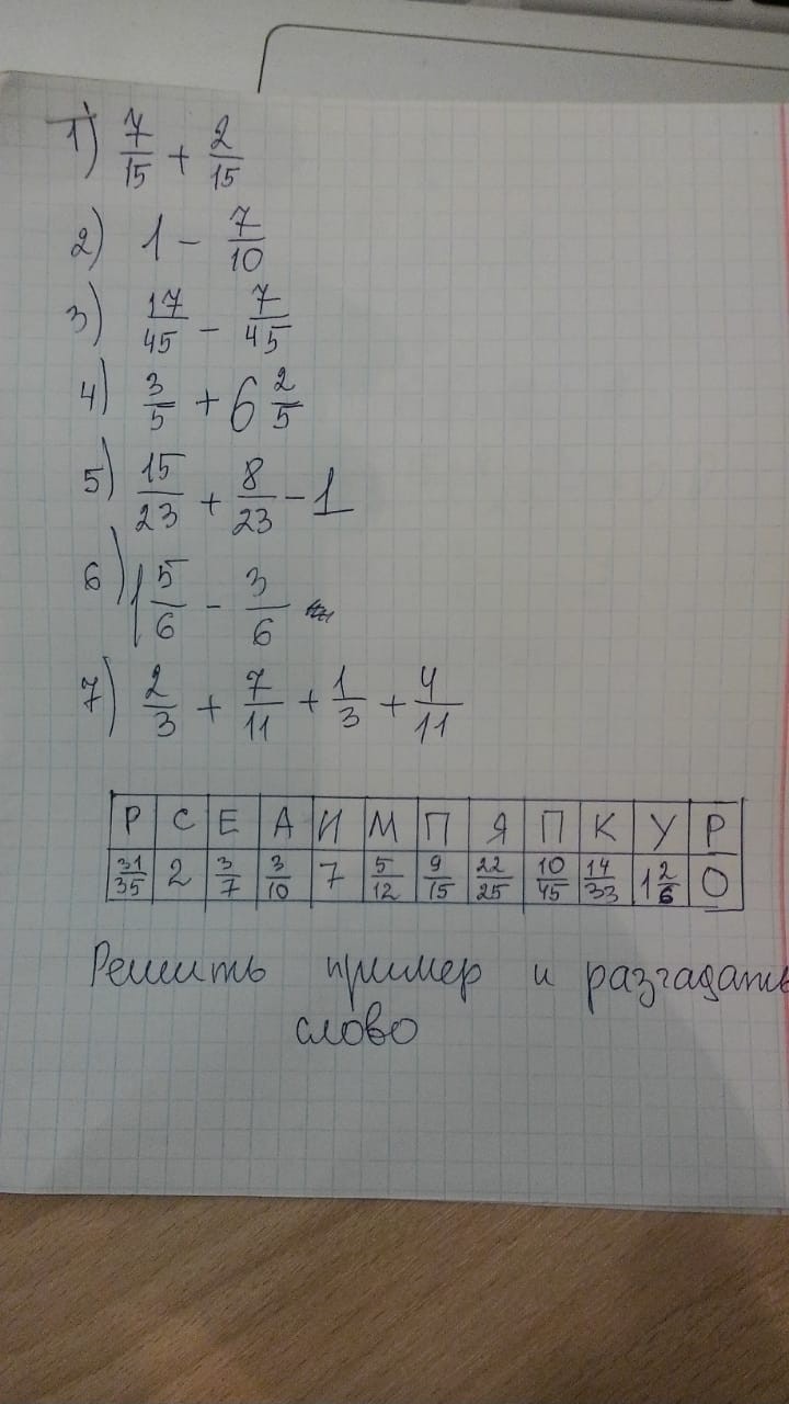7/15 + 2/15 = 9/15 = 3/5 = 0,6