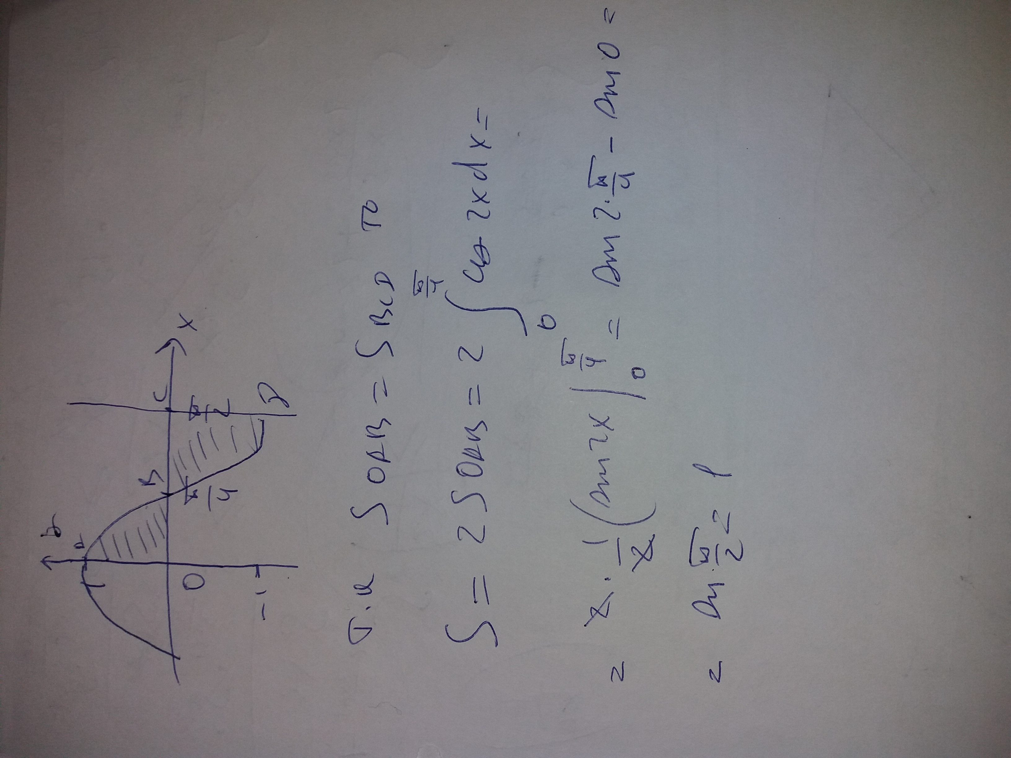 Вычислить площадь фигуры, ограниченной графиками функций Y=0, Y=COS2X на отрезке [0,π/2].