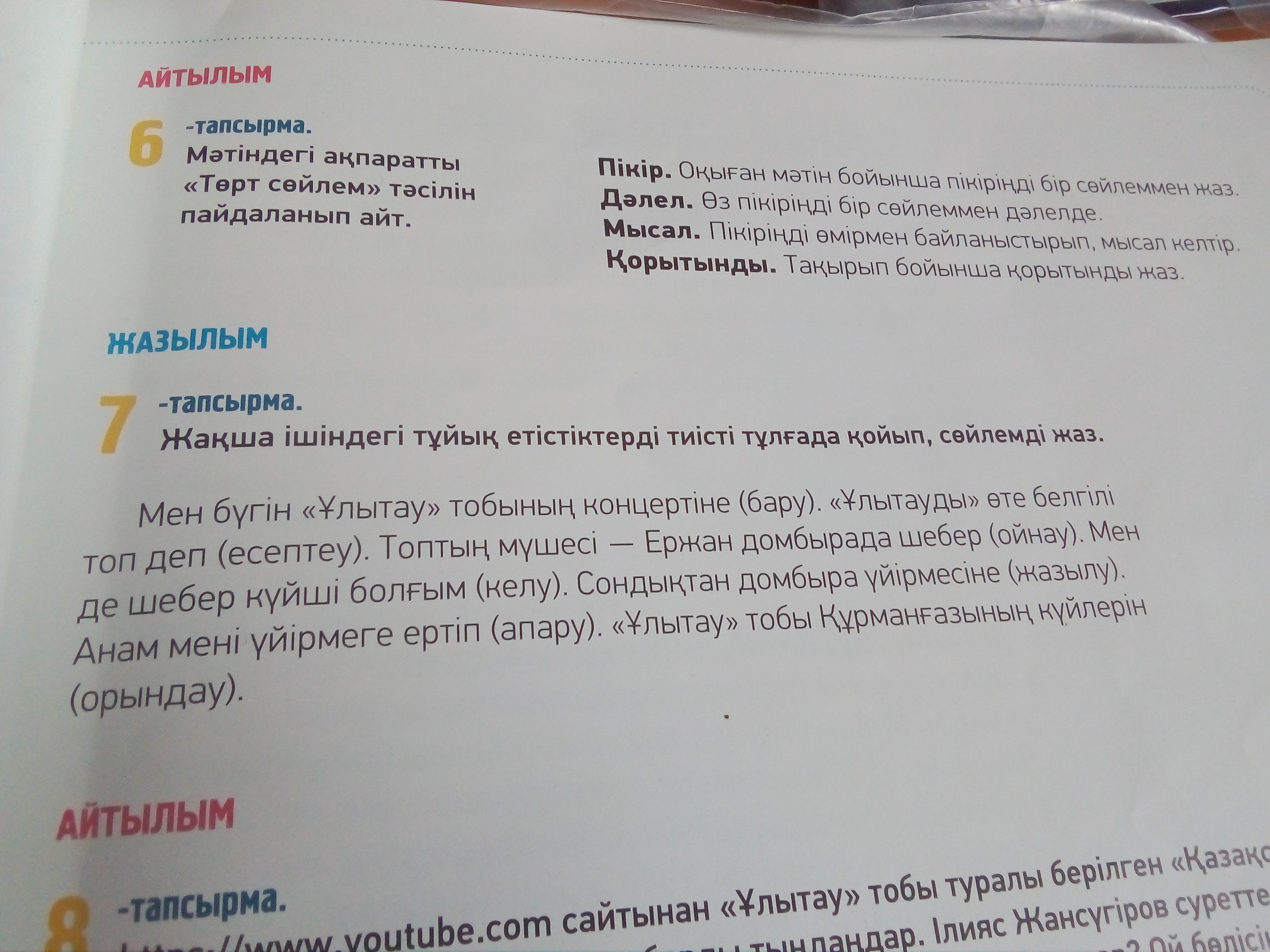 (Бардым),(есептеймін),(ойнайды),(келеді),(жазылдым),(апарады),(орындаймын)