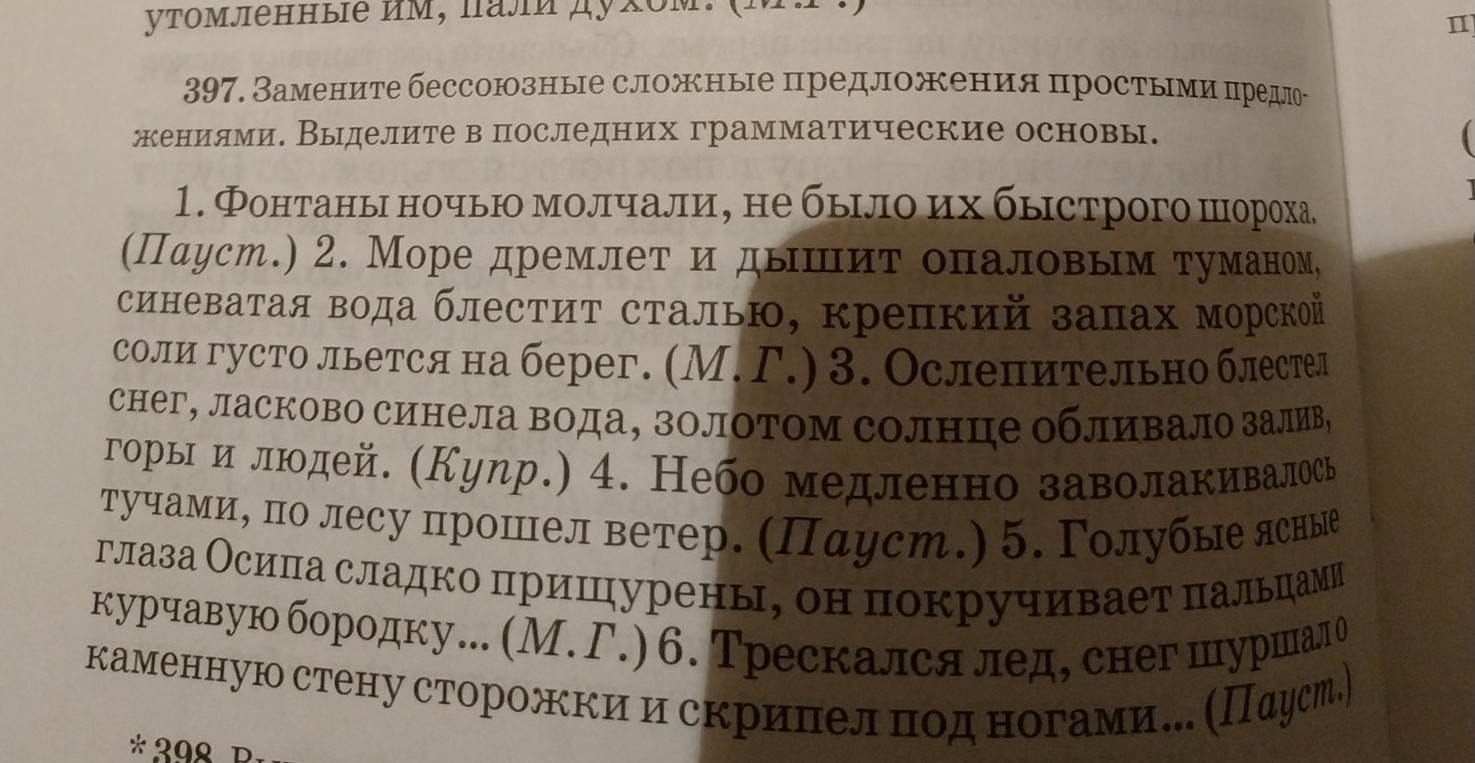 6 Трескался (сказуемое) лед(подлежащее). Снег(подлежащее) шуршал(сказуемое) о каменную стену сторожки и скрипел(сказуемое) под ногами.