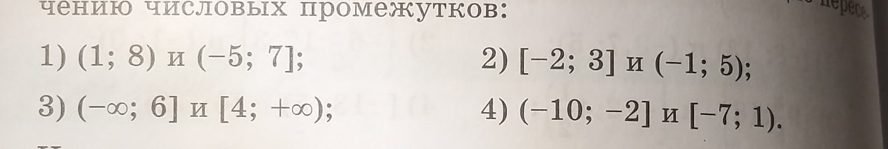 в 1) это 2 - 7 (ибо скобки круглые, а значит 1 и 8 не входят в промежуток) и т.д.