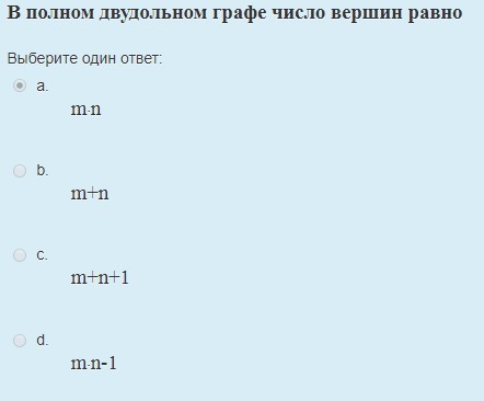 ответ b, обьяснить не могу, есть правило в котором сказано: число вершин в полном двудольном графе равно m + n, а число ребер m × n