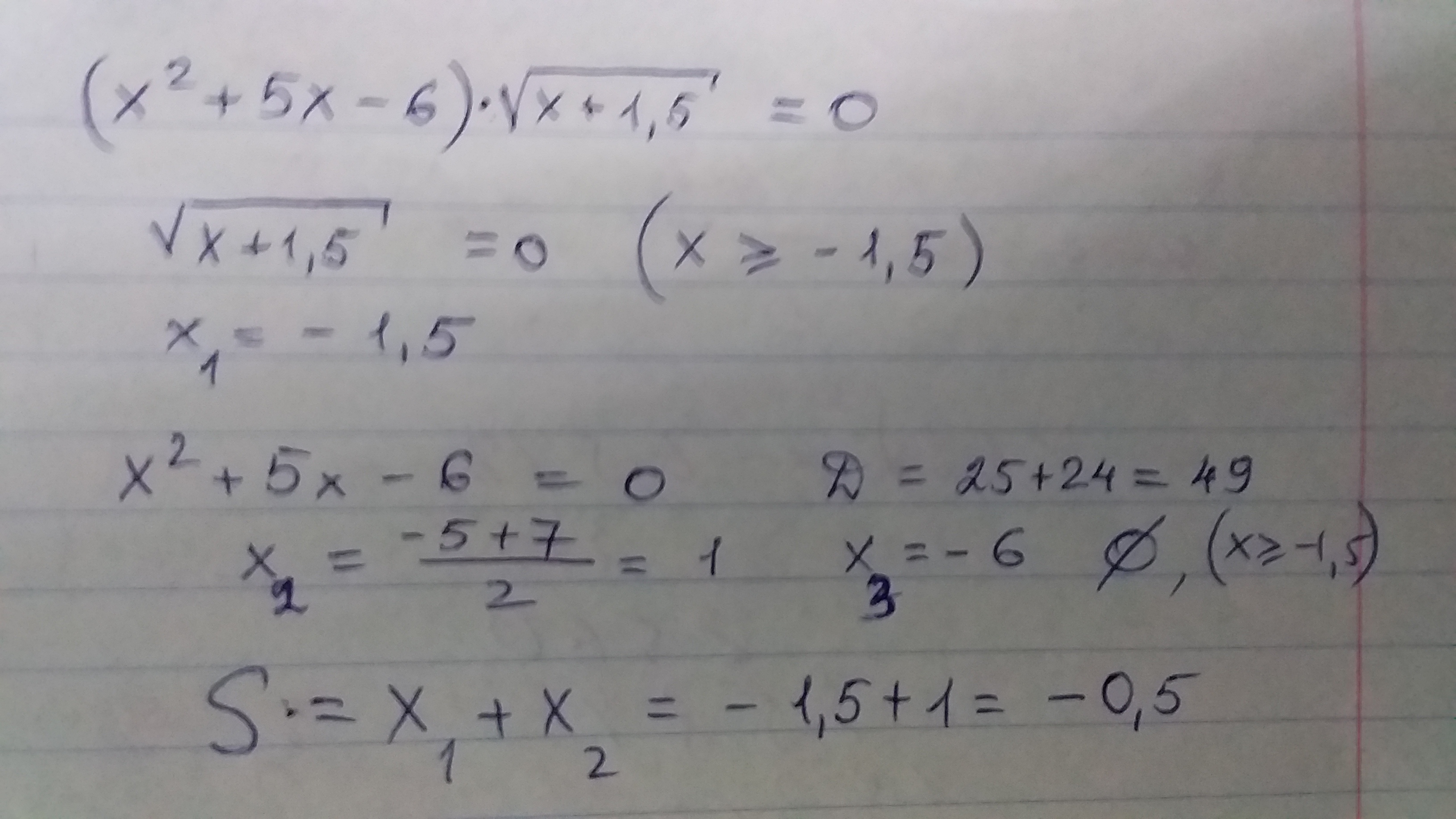 S=x1+x2=-0,5 .
