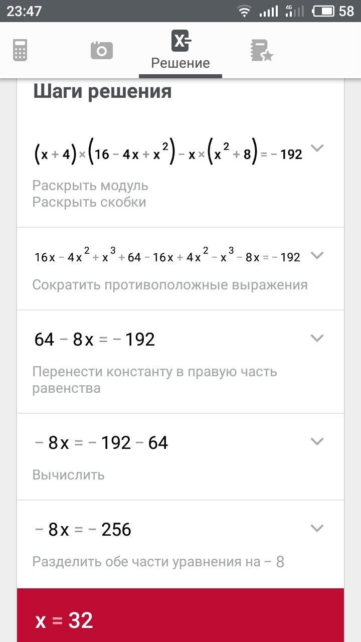 2) (х + 4)(16-4х + х²)-х(х²+ 8)= -192