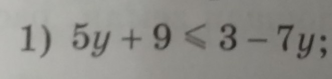 displaystyle 5y+9leq 3-7y\\5y+7yleq 3-9\\12yleq -6\\boxed{yleq- frac{1}2}