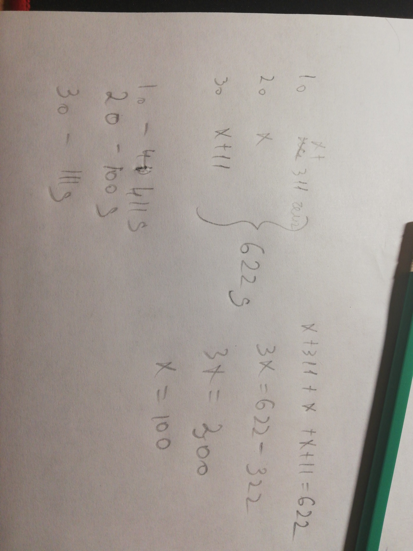 Три отряда посадили 622 дерева. Первый на 311 больше чем второй, а третий на 11 больше, чем второй. Сколько деревьев посадил каждый отряд?