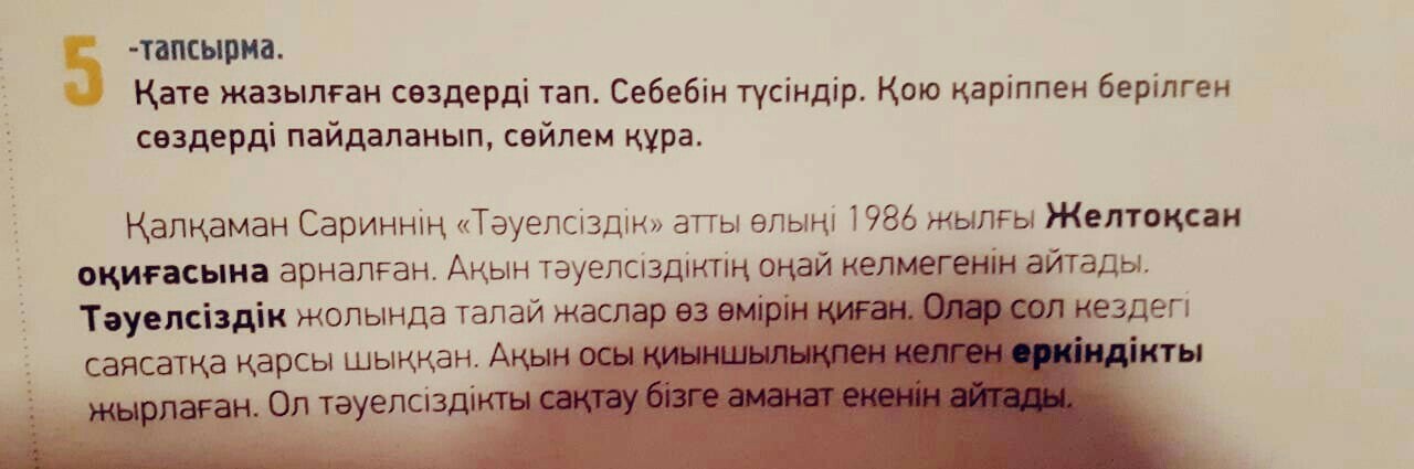 Қалқаман Сарин "Тәуелсіздік" атты өлеңі 1986 жылы Желтоқсан оқиғасына арналған. Ақын тәуелсіздіктің оңай келмегенін айтады.Тәуесіздік жолында талай жастар өз өмірін қиған. Олар сол кездегі саясатқа қарсы шыққан. Ақын осы қиыншылық пен келген еркіндікты жырлаған. Ол тәуелсіздіктің сақтау бізге аманат екенін айтады.