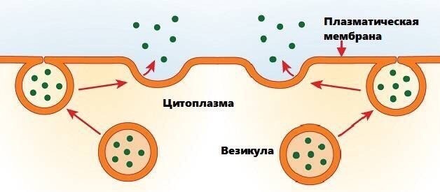 2) внеклеточная жидкость и растворенные молекулы веществ проникают в клетку путём инвагинации мембраны. При этом часть мембраны затрачивается на образование пузырьков с жидкостью( везикулы) внутри клетки. Мембрана восстанавливается обратным процессом-экзоцитозом.