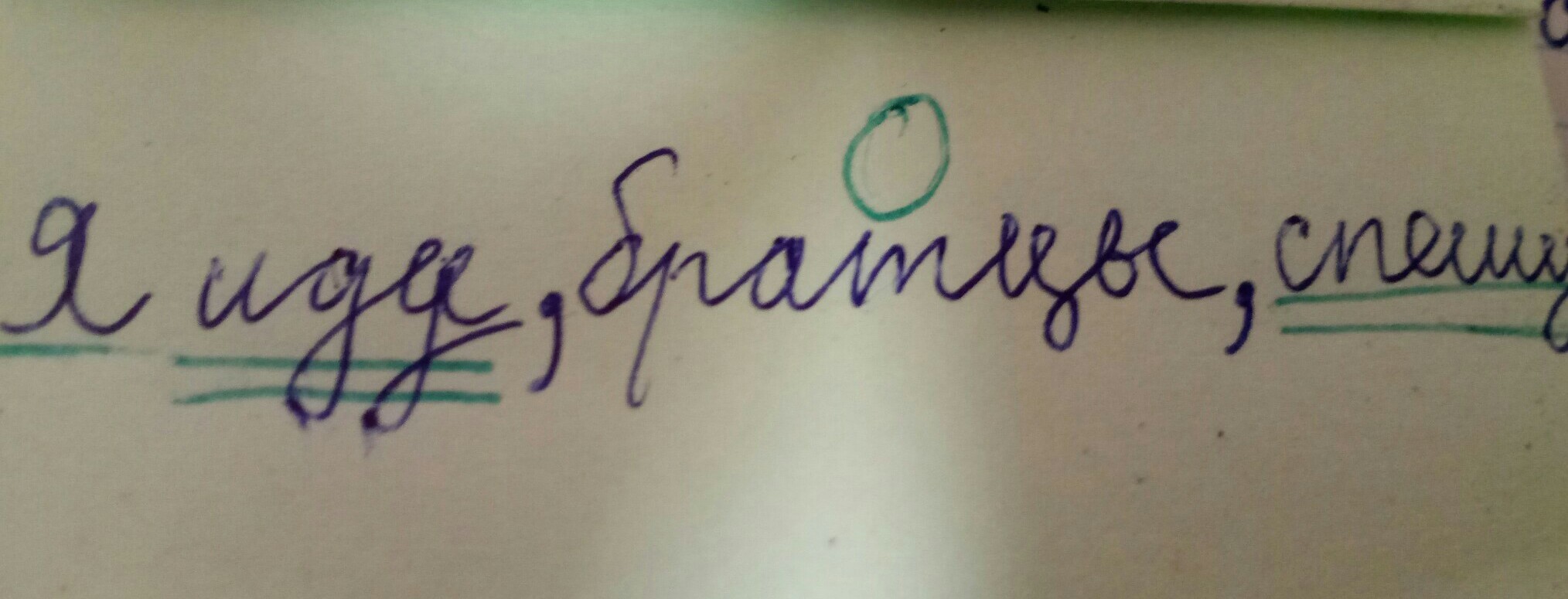 я-сказуемое, иду-подлежащее, спешу-подлежащее. сорри за подчерк.